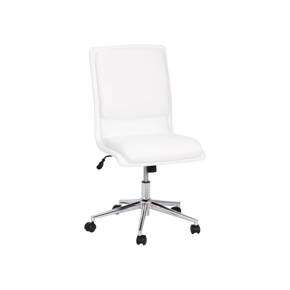 Fabulous form meets practical purpose in the elevated style of this mid-back office task chair. Plush foam padding in the back and seat is enveloped in luxurious LeatherSoft upholstery for an upmarket look in a commercial workplace or home office. LeatherSoft is leather and polyurethane for added softness and durability. The space-saving, armless design allows this elegant chair to tuck beneath your desk or other workstation and lets you enter or exit from multiple angles. Premium materials and durable construction make this beautifully appointed swivel chair a must have for daily use. A solid wood seat and 5-star chrome base give a worry-free seating experience and hold up to 250 lbs.
