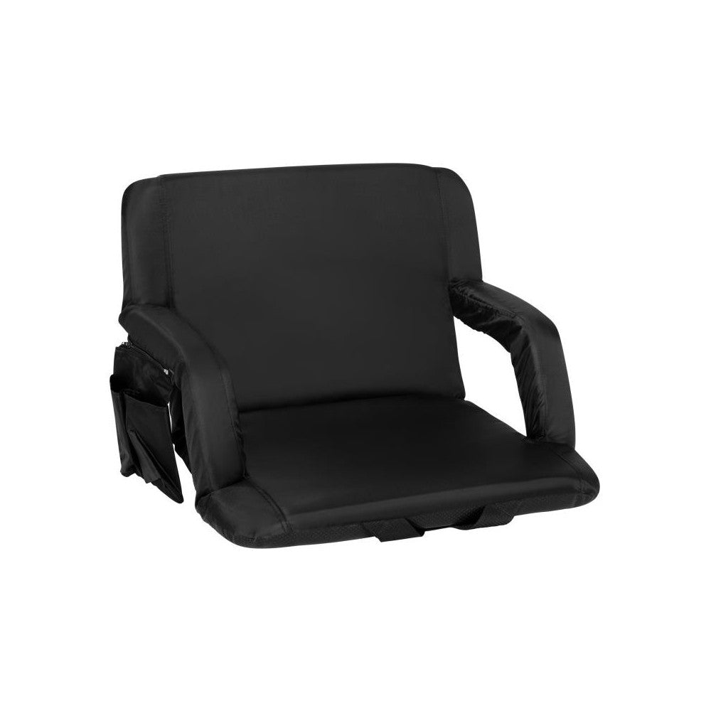 Whether you're off to the big game, your favorite campsite, or a day at the beach you will always have a comfortable place to sit with this extra wide portable reclining stadium chair. Boasting 6 reclining positions, dual storage pockets, a thick cushion, and the ability to be used with or without armrests, this must have indoor/outdoor chair meets your every seating need. When you're done for the day, simply lay the chair flat and use the adjustable backpack straps to free up your hands while you take the chair with you to the car, RV, or into the house. The slim profile makes vertical or horizontal storage a breeze. Premium, long-lasting materials ensure this multifunctional reclining chair is strong and reliable.