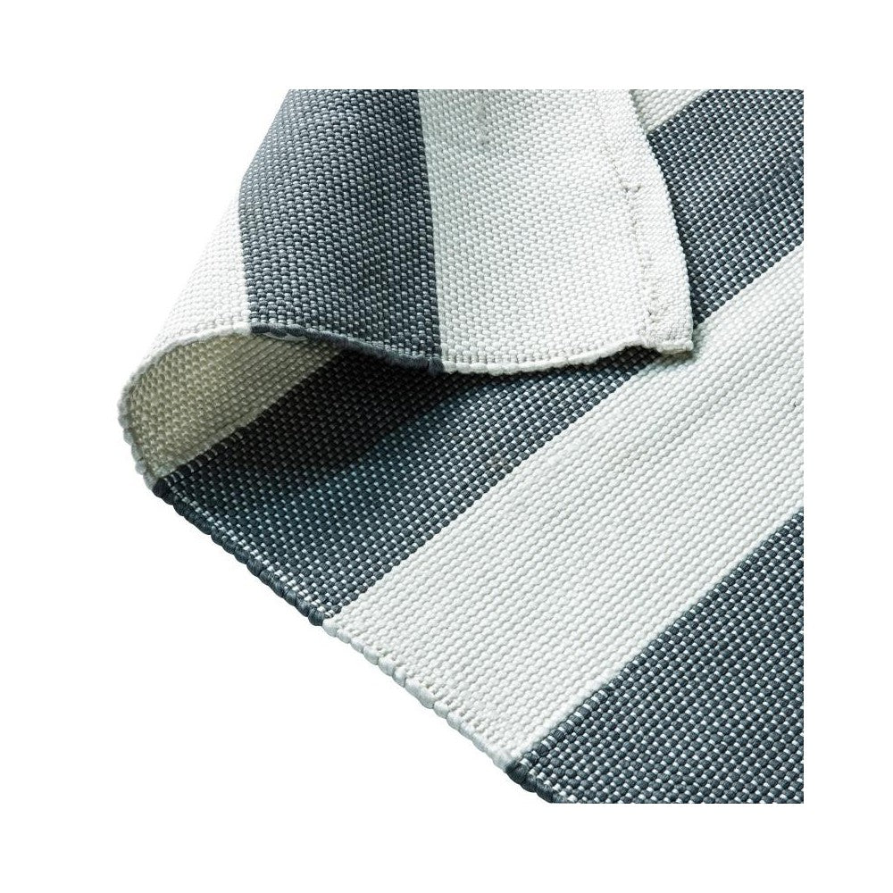 Long lasting comfort paired with a budget-friendly price point make this indoor/outdoor Gray and white striped cabana style area rug ideal for busy families. The neutral palette blends beautifully with your indoor furniture or deck or patio set to instantly transform the look of your space. Strong synthetic handwoven polypropylene fibers can absorb water without growing mold or mildew and are ideal for high moisture areas such as kitchens, bathrooms, entryways and decks. Use this rug under your poolside furniture to prevent contact with hot walking surfaces while you relax. Low maintenance is always an important factor for the modern lifestyle and this handwoven area rug won't disappoint.