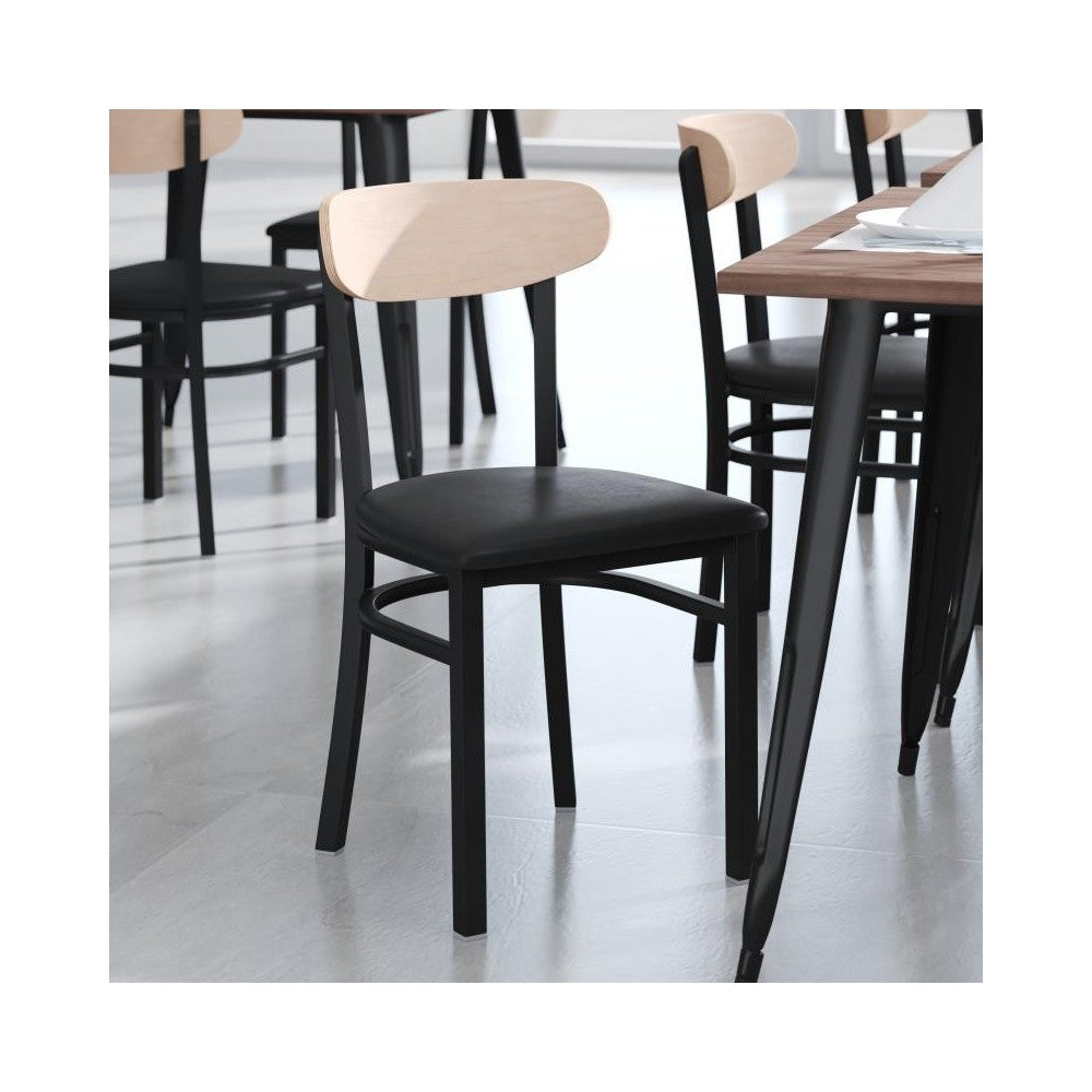 - Commercial Dining Chair with Vinyl Upholstered Seat and Wood Boomerang Back, Set of 2