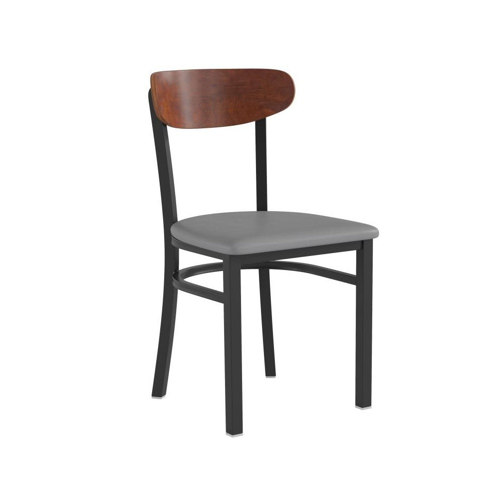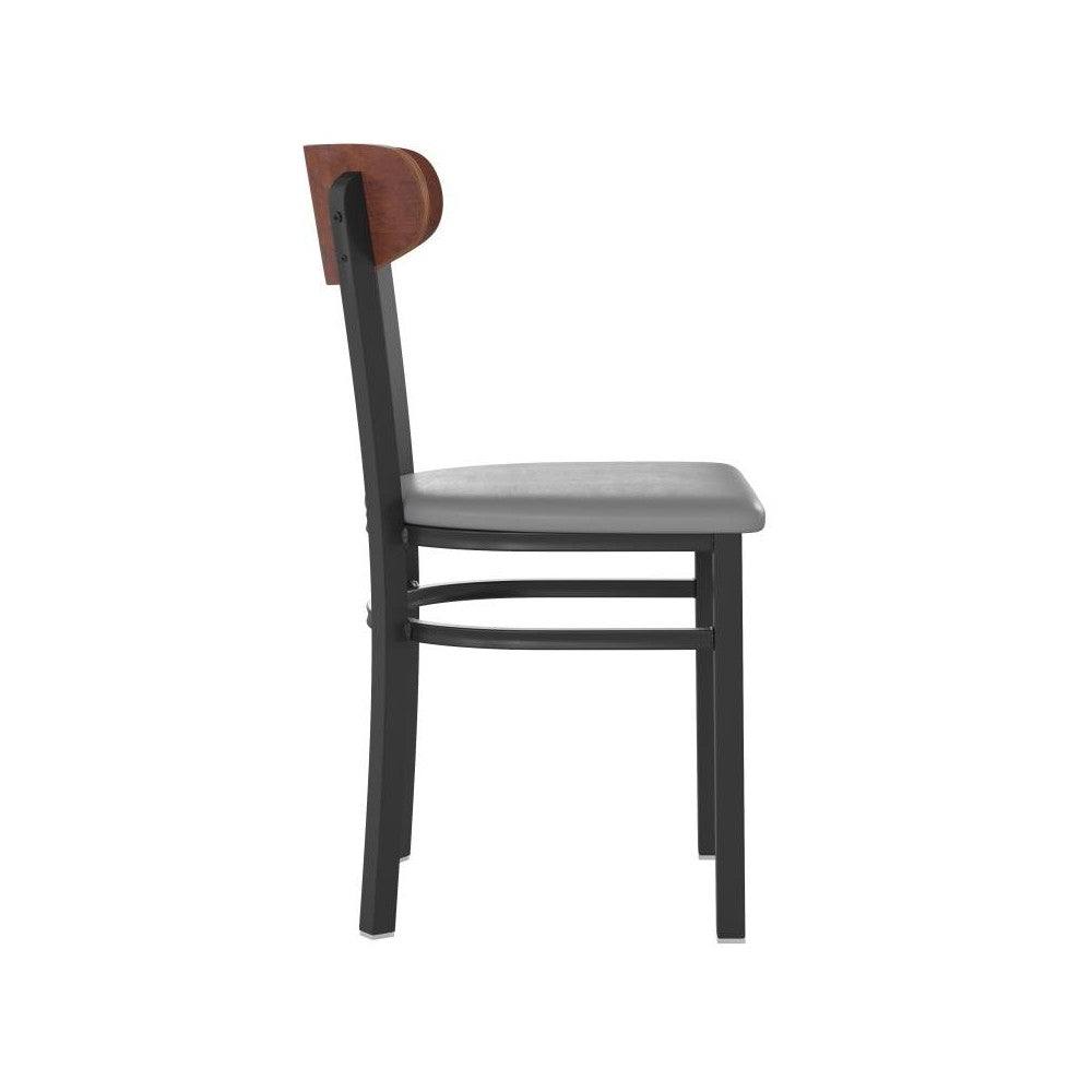 - Commercial Dining Chair with Vinyl Upholstered Seat and Wood Boomerang Back