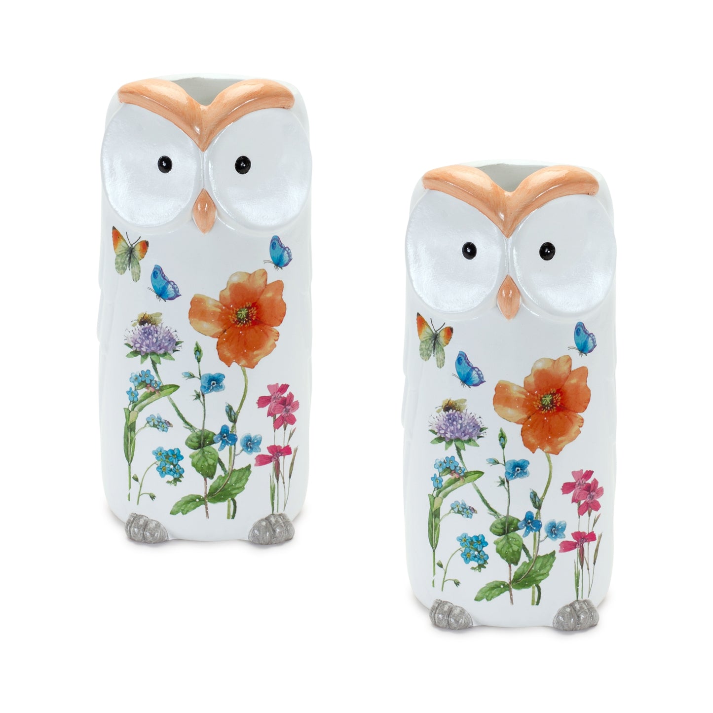 Add a pop of color to your spring decor with this beautiful Floral Owl Vase. Featuring two pieces, the bright colors paired with the delicate floral design with butterfly accents is the perfect combination to create a timeless display. The quality terracotta composition is sure to last for seasons to come. Add a bunch of dried florals or fresh cut garden stems to each vase to compelte the look.