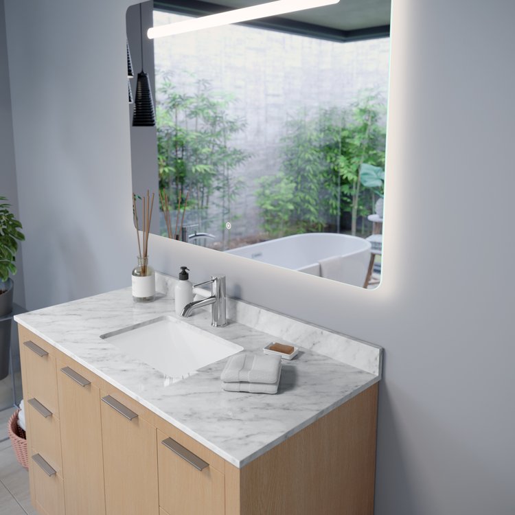 Arpella lighted mirrors provide optimal lighting that is similar to natural lighting. The Arpella lighted mirror will be the focal point of your bathroom with its elegant, modern yet simple design. Brighten up your bathroom today.
