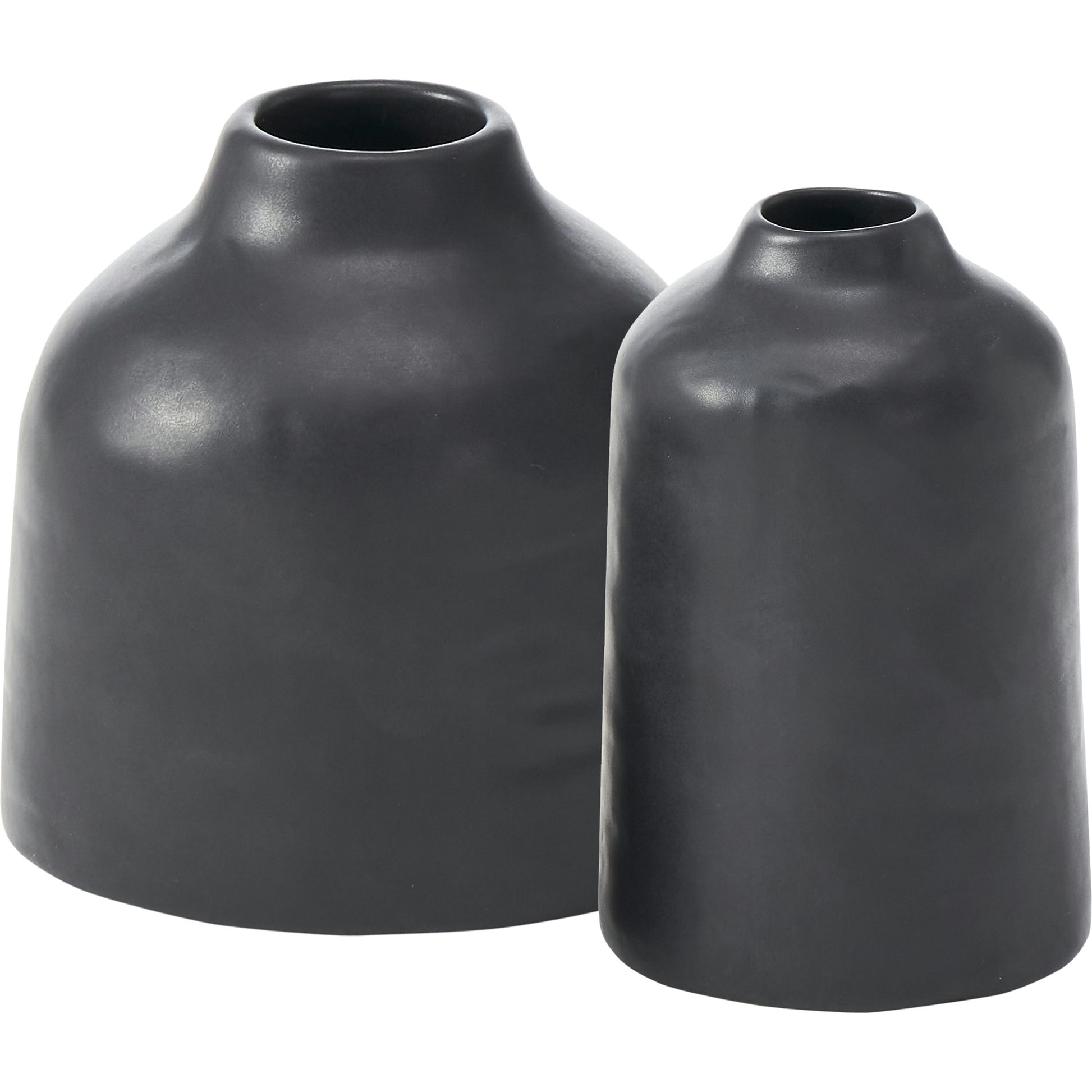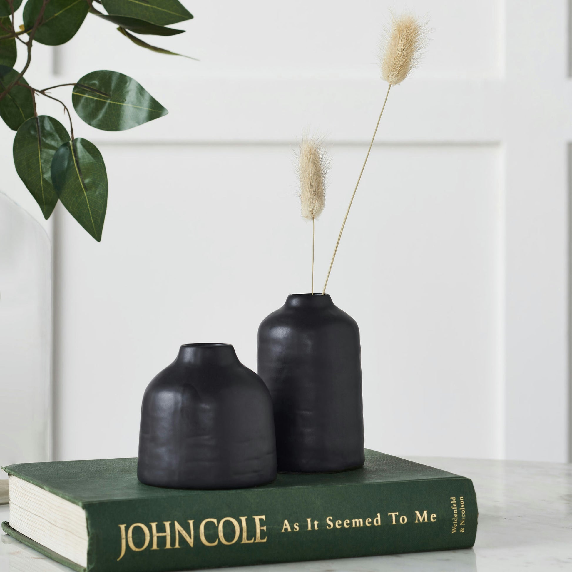This set of two vases carries a bold vibe to the living room interior. At 5 by 2.5 inches and 4 by 2.5 inches, the differences in depth and dimension bring to light new facets of the designs’ beauty. Made from ceramic stoneware with a matte black semi-gloss finish, it presents a polished presence when set on a mantel, shelf or desk.