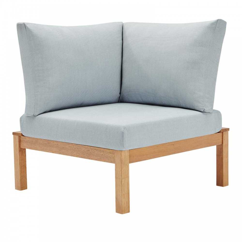 Style your patio and outdoor space with the uniquely configured Freeport Outdoor Patio Sectional Sofa Corner Chair. This FSC certified karri wood outdoor sectional seat has a beautiful natural wood frame. This solidly constructed seat features a gently reclining slatted back for an angle of repose that delivers relaxing outdoor enjoyment. Complete with padded seat and back cushions with soft, all-weather fabric covers, Freeport provides a comfortable lounging space by patio, deck, backyard, or porch. The Freeport Outdoor Patio Sectional Sofa Corner Chair will elevate your outdoor decor with a blend of coastal accents for a fresh, contemporary style. Removable Cushions. Chair Weight Capacity: 331 lbs.
