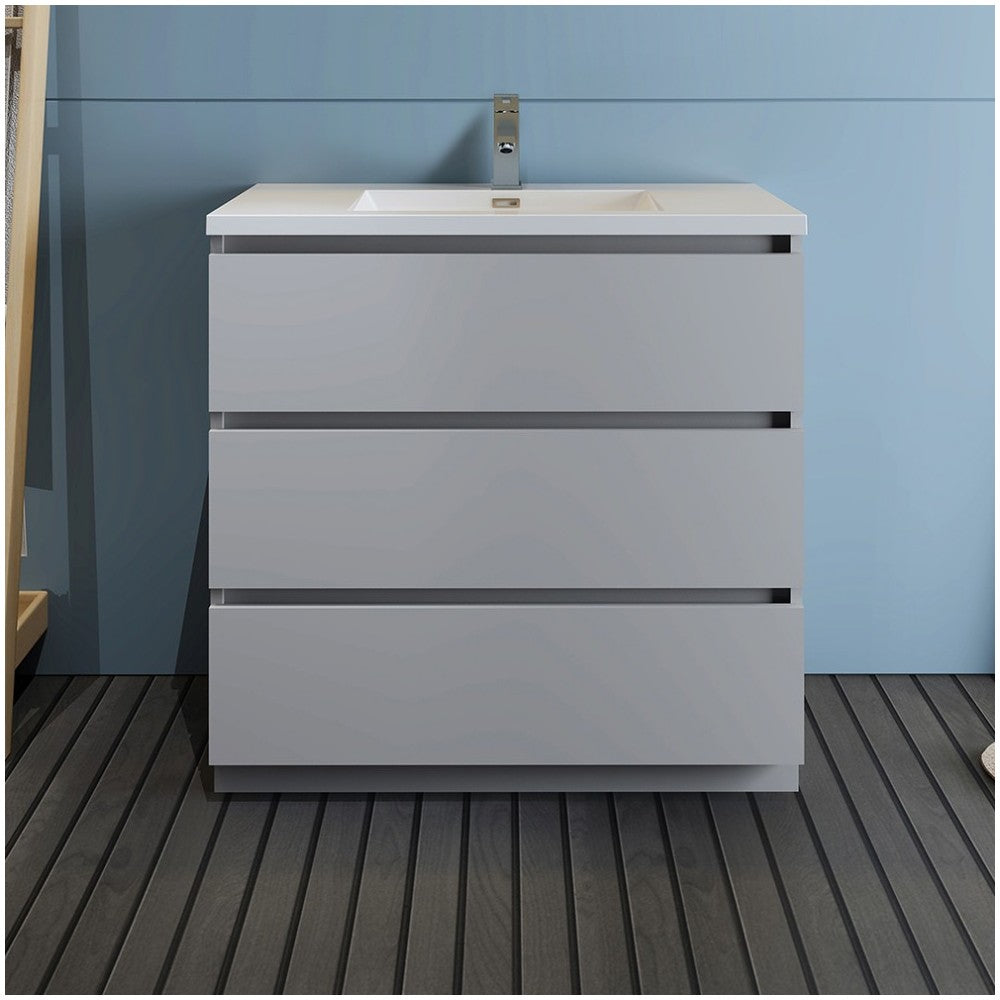 Fresca Lazzaro 36" Gray Free Standing Modern Bathroom Cabinet w/ Integrated Sink