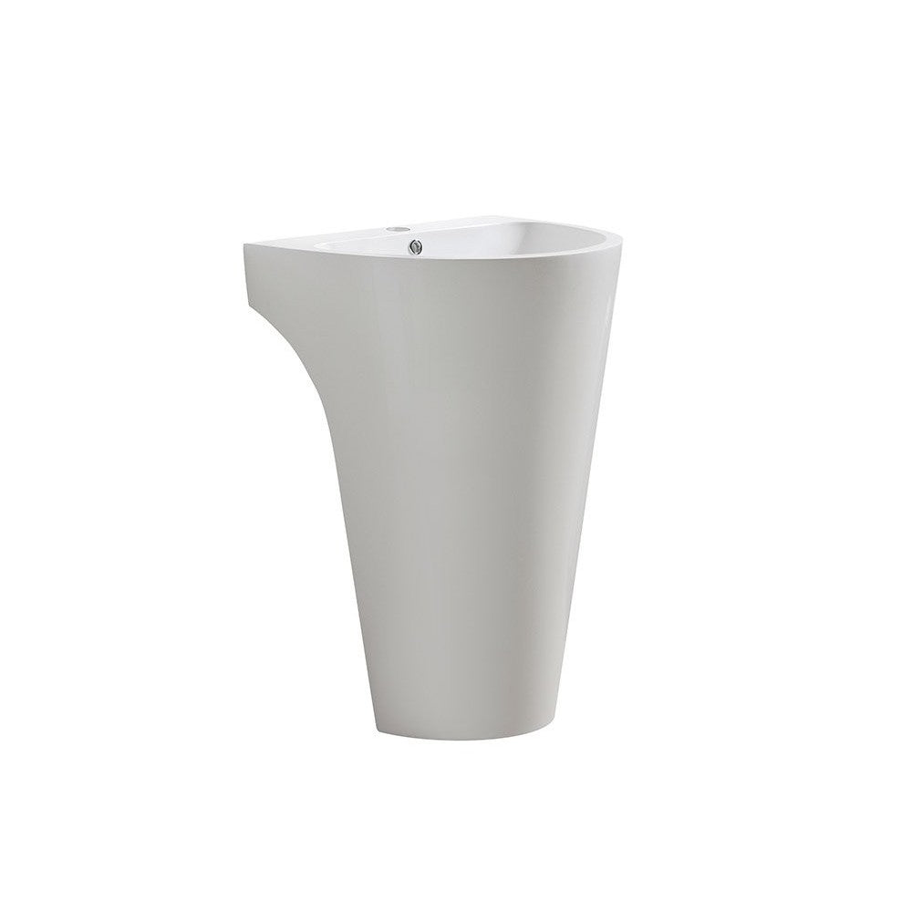 Dare to be different. Add a one-of-a-kind touch to your bathroom with this contemporary white pedestal sink. With a smooth, sleek shape, this tapered pedestal sink with overflow makes the most of smaller spaces. With a single hole faucet mount, this Fresca Parma White Pedestal Sink blends beautifully with any bathroom decor and would also be perfect for a powder room. It's a stylish find that adds a unique, modern touch to any home