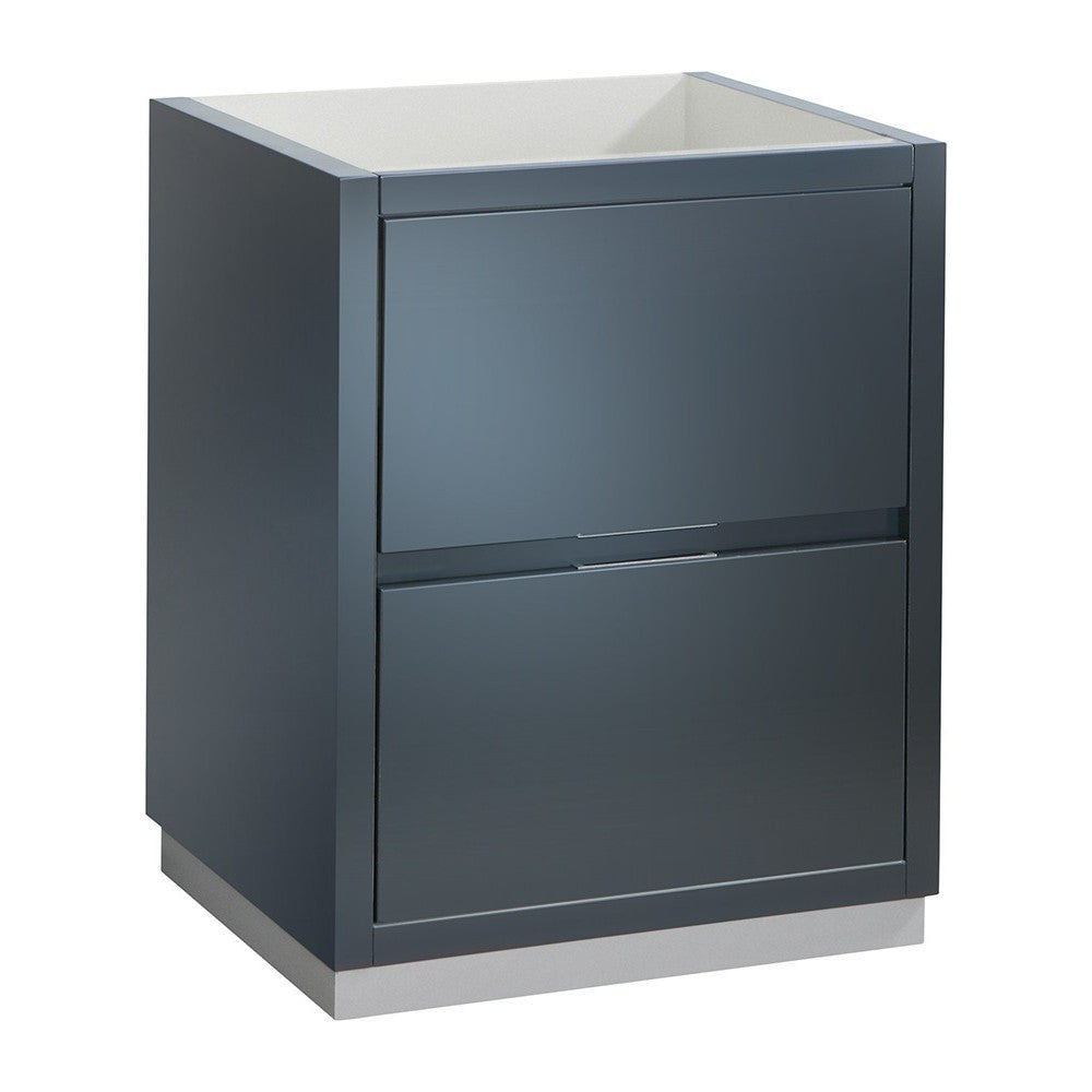 The Fresca Valencia Free Standing Modern Bathroom Cabinet is the ideal starting point for creating an elegant and modern bathroom. The rectangular vanity offers great storage with two soft-closing drawers, just perfect for organizing all of your daily essentials. The drawers feature concealed aluminum handles and the cabinet has a stylish Glossy Dark Slate Gray finish. It rests on a silver base, adding to its modern look. This cabinet is available in multiple sizes and makes a stylish statement in any home