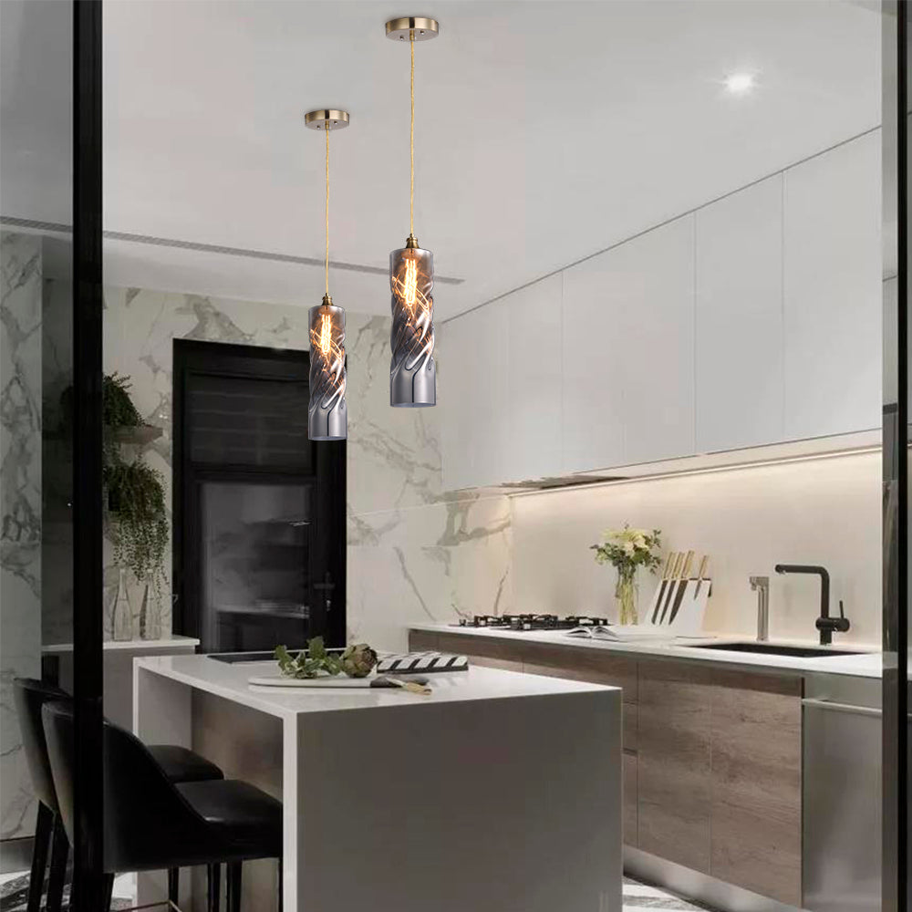 Gemeaux Cylinder Ombre Glass Indoor & Outdoor Pendant Light - Gray
