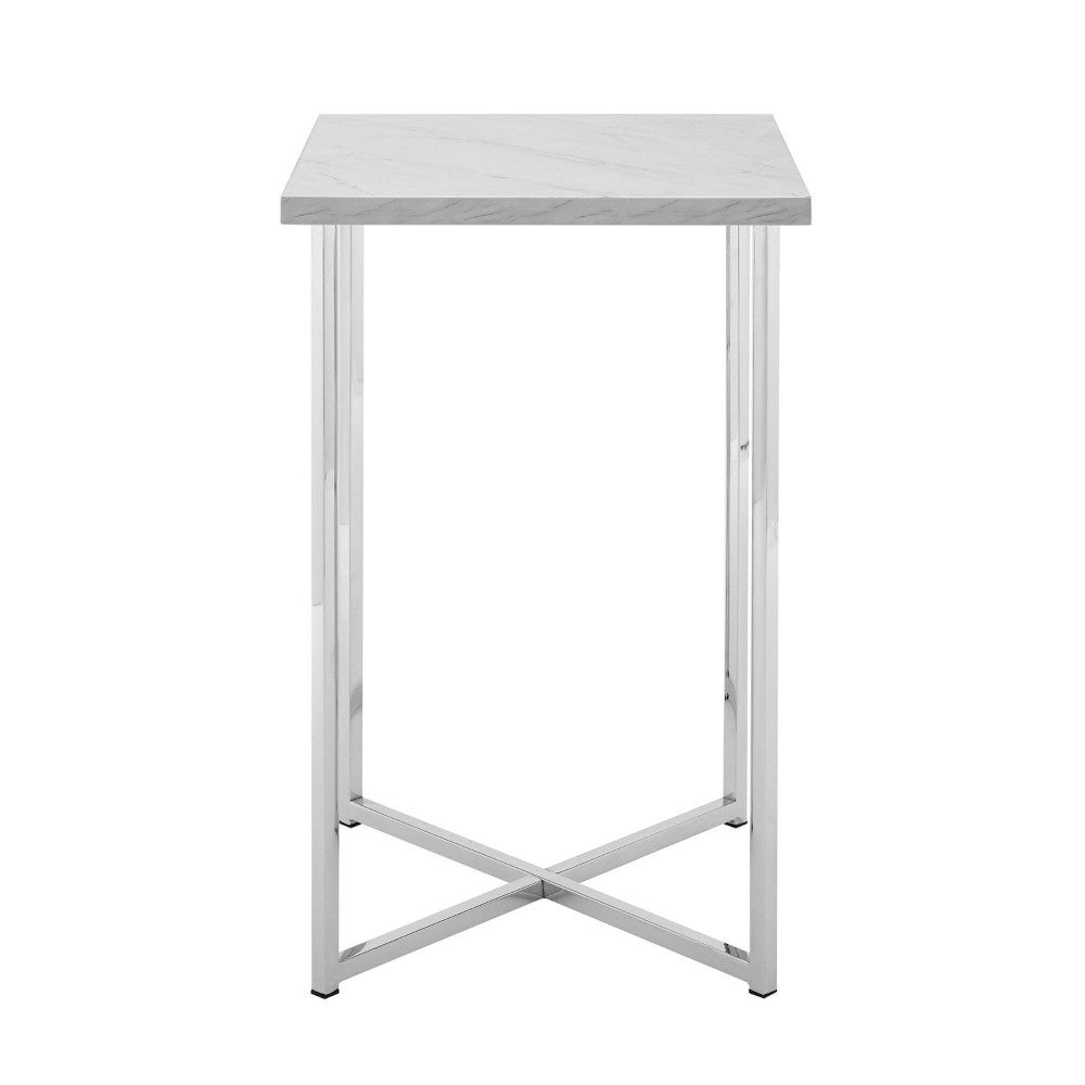 Glam 2-Piece Metal and Wood Square Accent Tables - Faux White Marble/Chrome