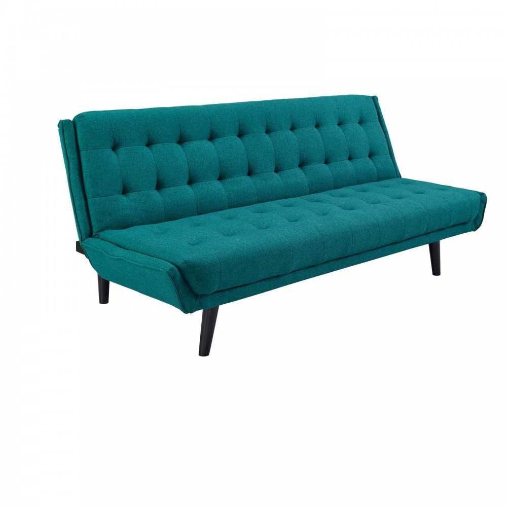 Create a favorite lounge spot in your home or apartment with the Glance Convertible Sofa Bed. Blending retro style with contemporary modern form, Glance offers mid-century charm with its timeless tufted seat, flared silhouette, splayed black wood legs with foot caps, and soft polyester fabric upholstery. Turn any space into a cozy spot for rest and relaxation by simply reclining the back of the sofa for easy conversion into a bed for overnight guests. Dense foam padded comfort and a spacious seat make this futon a welcome addition in the living room, family room, den, or recreation area. Weight Capacity: 287 lbs.