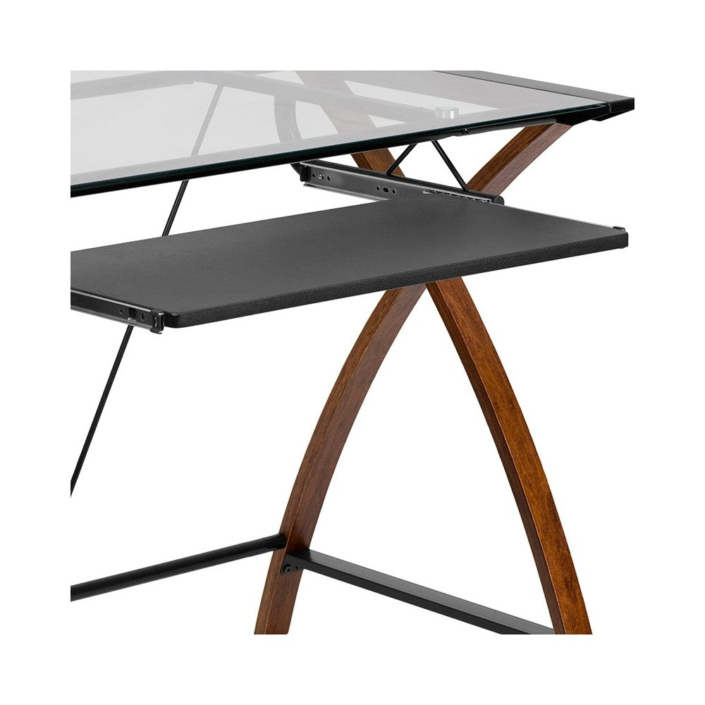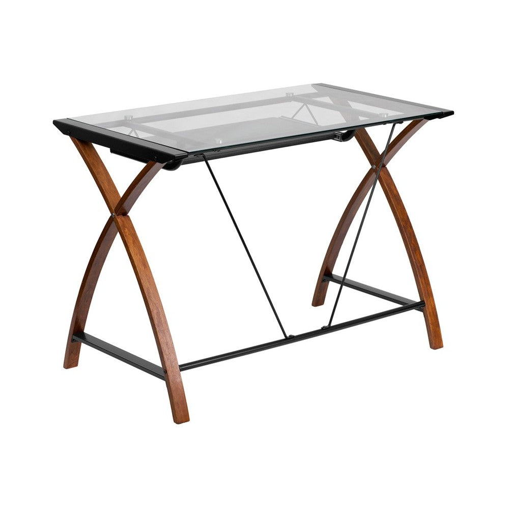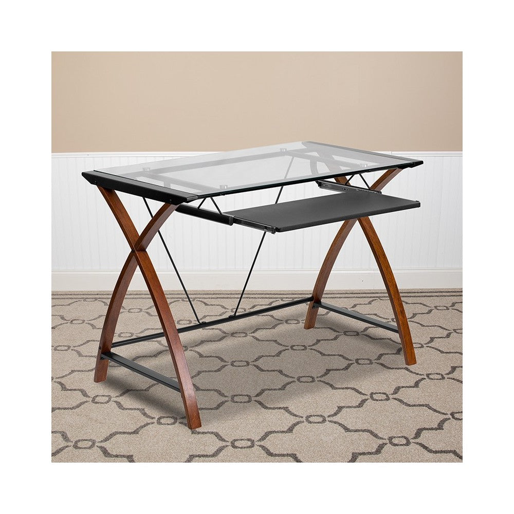 Glass Computer Desk with Pull-Out Keyboard Tray and Crisscross Frame