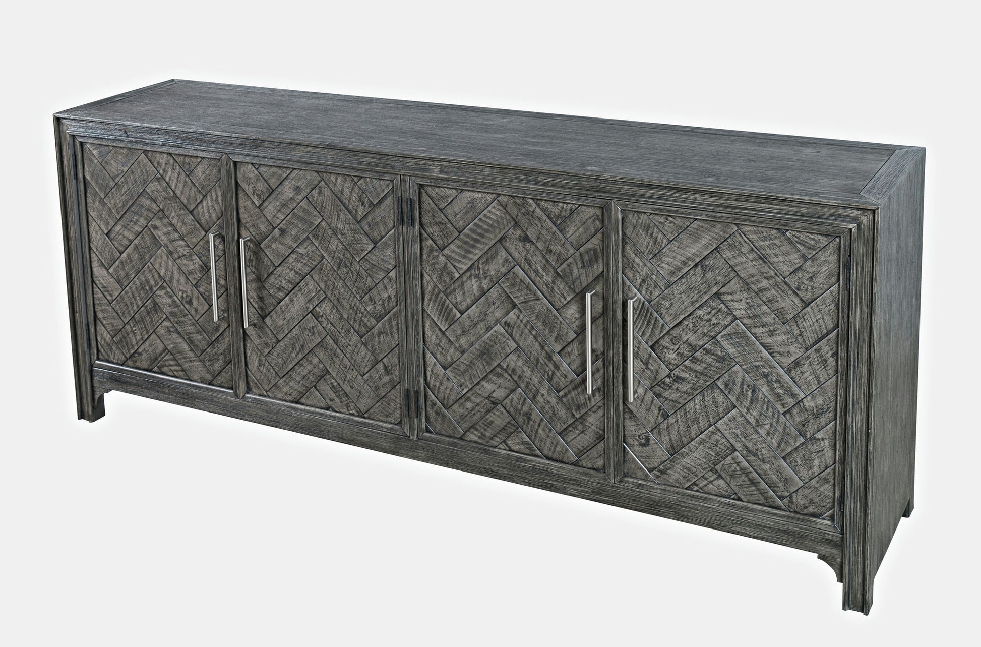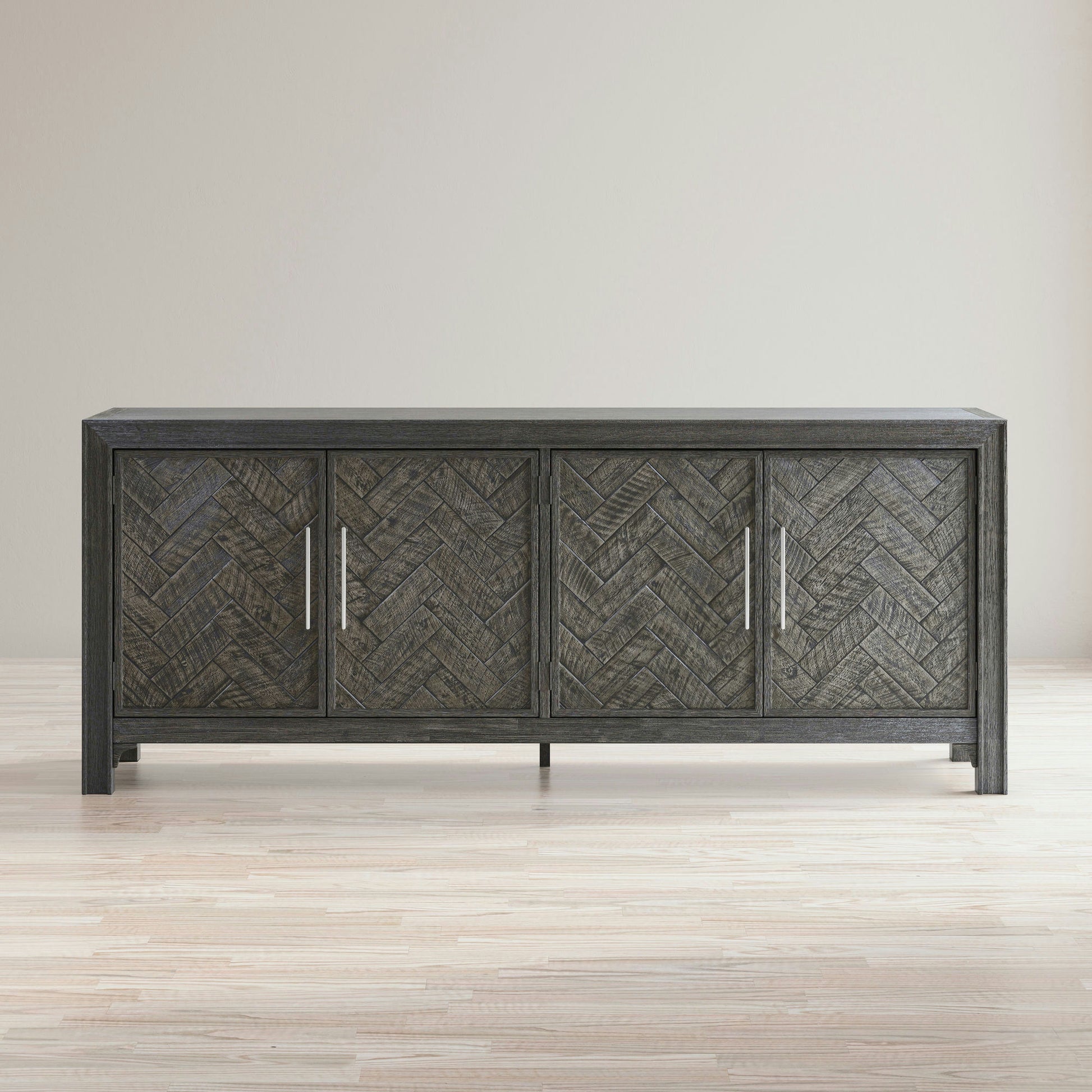Gramercy Mid-Century Modern Chevron Four Door 79" Accent Cabinet - Platinum