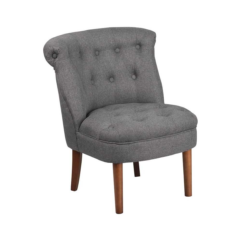 Designed for many uses around the home or in an office setting, this small framed accent chair will provide a fresh and pleasing look to your space. Button tufted upholstery highlight this chair features a rounded seat, wood legs, and rolled back design. The inviting accent side chair will complement the home or office, and can adapt in contemporary and traditional settings. Protective floor glides protect your floor by sliding smoothly when you need to move these beautiful chairs. [QY-A01-GY-GG]