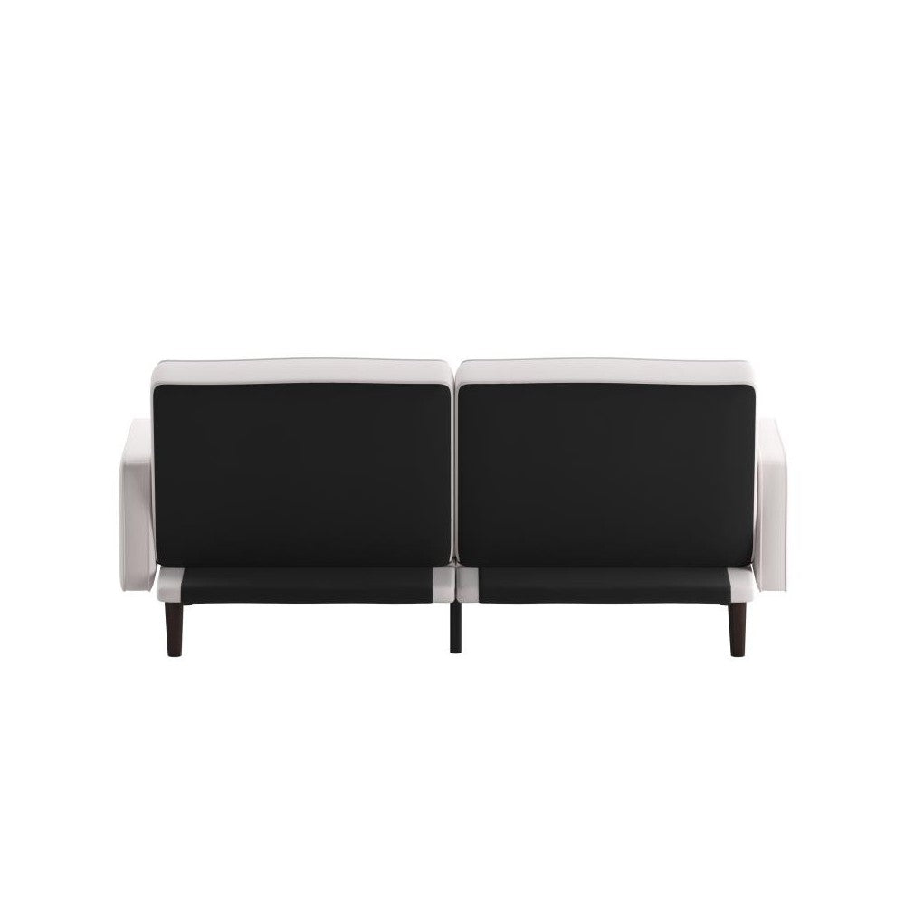 - Mid-Century Modern Split-Back Futon Sofa with Curved Armrests