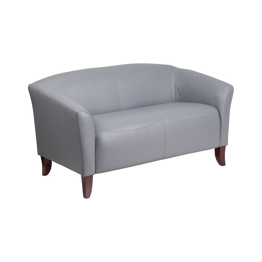 Your lobby or reception area is the forefront of your business and providing distinguished and comfortable seating is the first step towards making a great impression. The modern appeal of this LeatherSoft loveseat will make a lasting impression with your visitors. LeatherSoft is leather and polyurethane for softness and durability. The contemporary design of this furniture adapts in several different settings. This loveseat features streamlined stitching and elevated, curved hardwood feet. Not only will this piece fit in a professional environment, but will add a modern look to your home. [111-2-GY-GG]