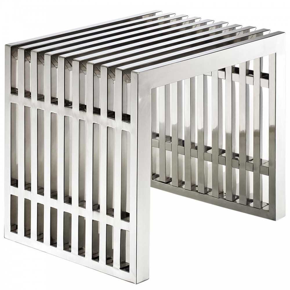 Silver rivers of laughter race back and forth in this high energy modern piece. Gridiron's sleek stainless steel bench contains a message of transformation and metamorphosis. Exuberance abounds as the strategic placement of this piece will radiate a happy atmosphere.