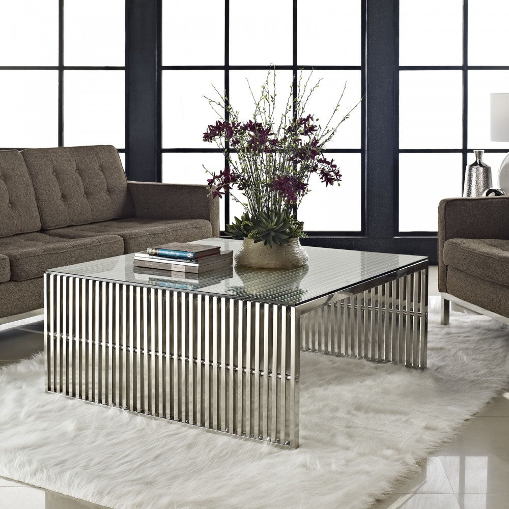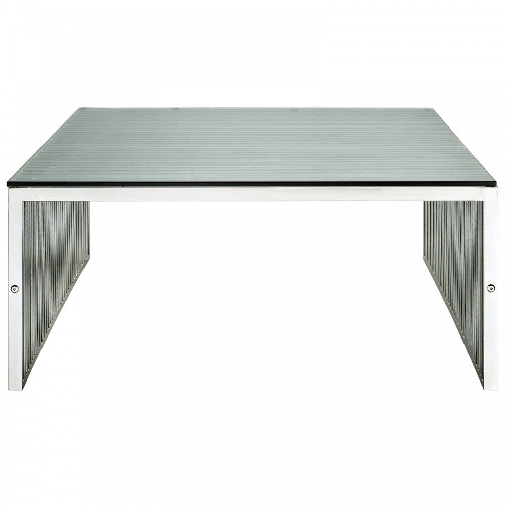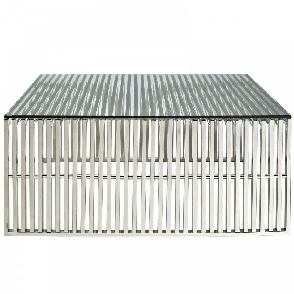 - One - Gridiron Stainless Steel Coffee Table with Tempered Glass Top