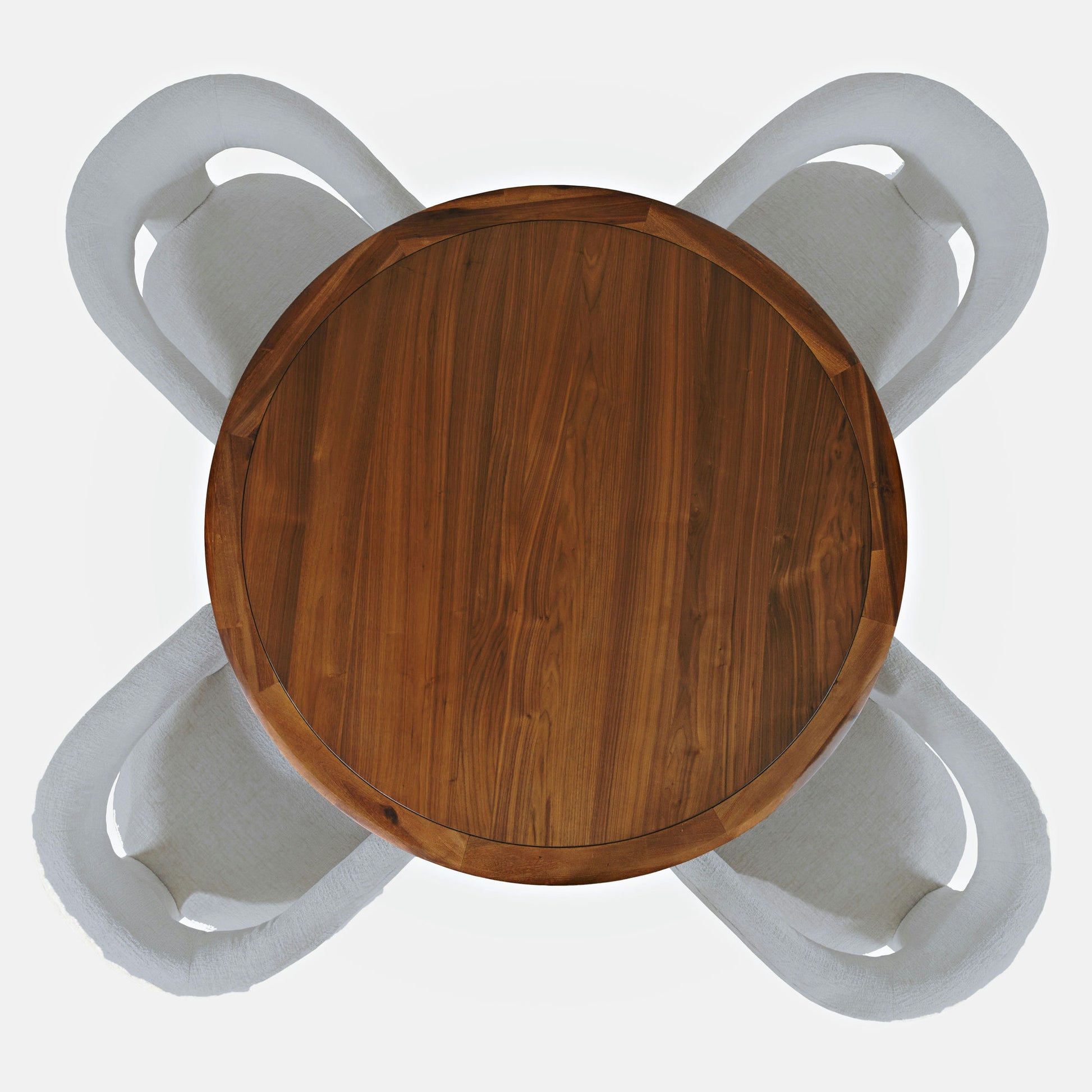 Upgrade your home with the stunningly beautiful Gwen Luxury Mid-Century Modern Five Piece Dining Set. The set includes four matching upholstered dining chairs with plush Jacquard fabric, and a 50 inch modern pedestal dining table. The rounded back with integrated arms offers both flexibility and functionality, making it ideal for use as an accent chair in your living room or as guest seating in your dining room. Crafted with a mid-century modern tapered base and a rich walnut brown finish, the dining table exudes sophistication and elegance. The minimalist design features an enticing curved silhouette that seamlessly blends modern simplicity with daily functionality, perfect for weekday dinners with family or game night with friends.