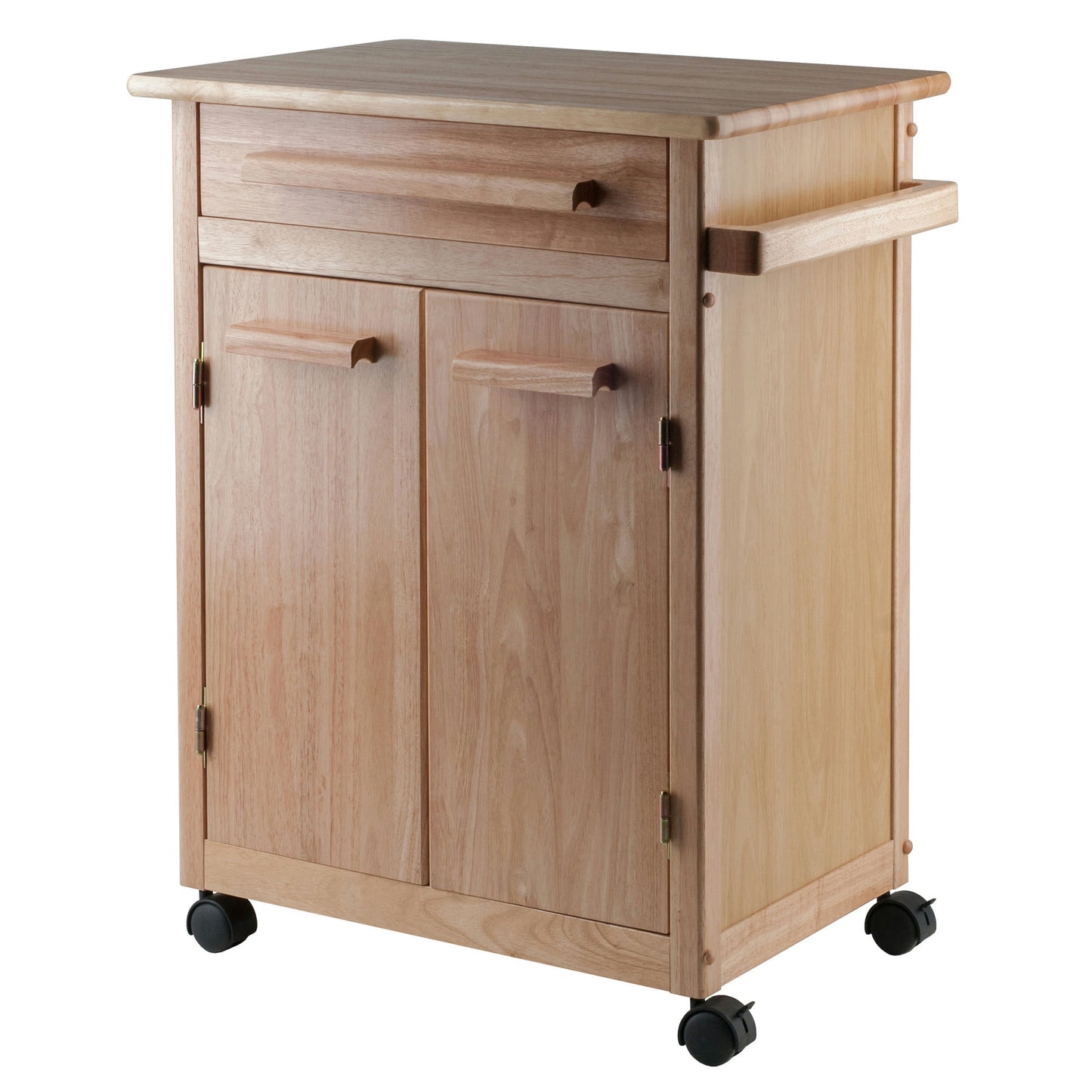 The Hacket Kitchen Cart provides you with a handy food preparation surface and storage cart all in one. Casters provide the cart with high mobility and the pull out drawer, open cabinet behind the door, and towel holder provide it with ample storage.