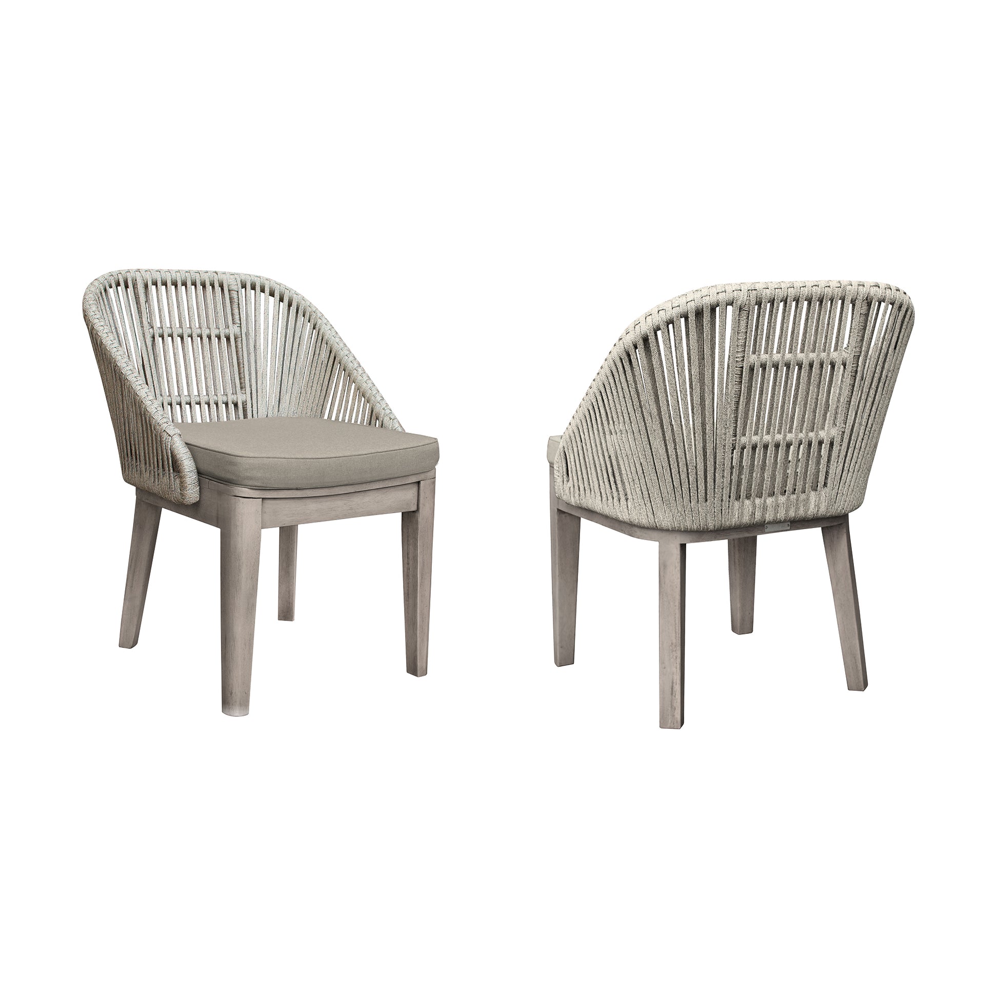Haiti Patio Outdoor Dining chairs in Grey Acacia Wood and Rope - Set of 2