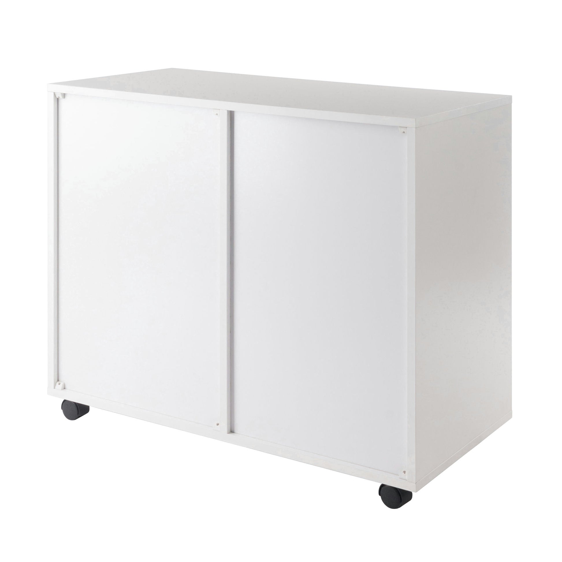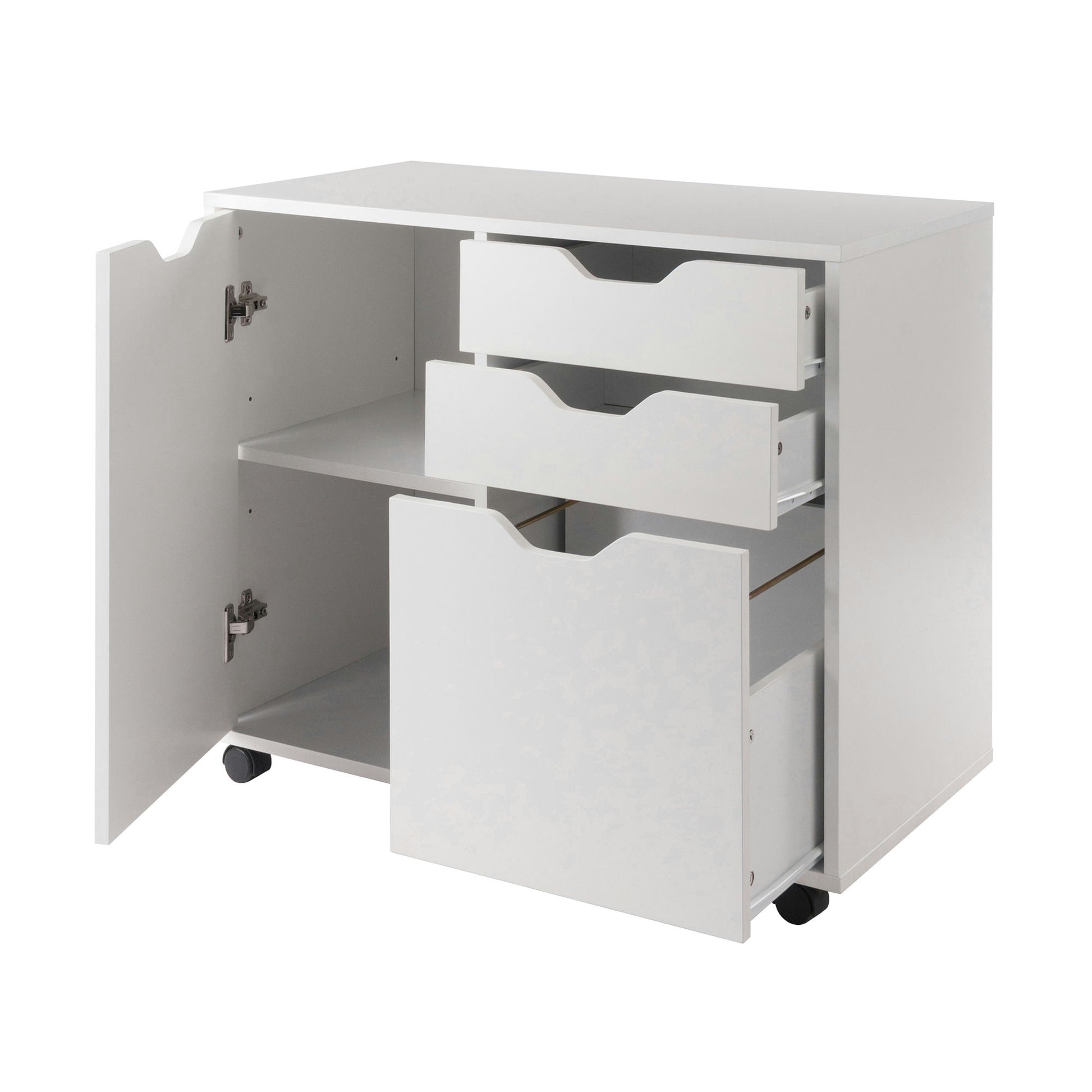 Simple and practical, with a contemporary look, the Halifax 2-Section Filing Cabinet is the answer for organizing your home office. Or use this versatile storage unit for craft supplies, shoes and clothing, sporting gear, and much more. With two drawers plus a convertible file drawer and a tall cabinet with door and adjustable shelf, this mobile storage piece is the perfect organizational tool for your home. Made of sturdy composite wood in a clean white finish.