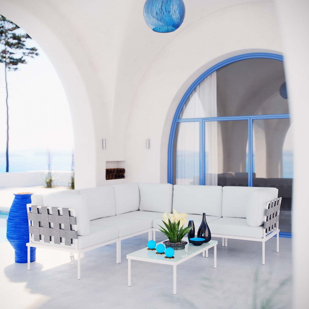 Harmony 6 Piece Outdoor Patio Aluminum Sectional Sofa Set, White White, EEI-2627-WHI-WHI-SET