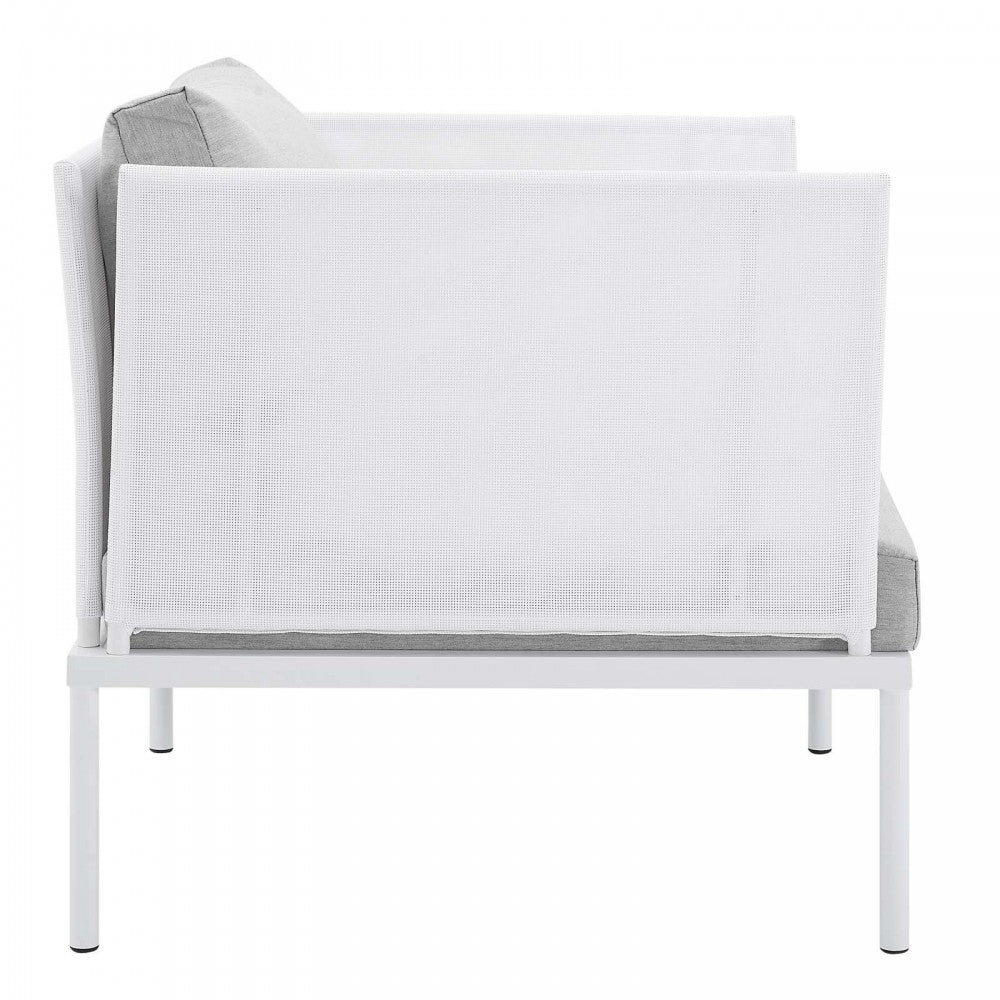 Engage life with Harmony. Enjoy casual conversation under the open sky with an all-weather waterproof furniture set that delivers an exceptional outdoor porch, patio, balcony or garden experience. An exceptional modern furniture set that exceeds expectations, Harmony comes with long-lasting machine washable Sunbrella fabric cushions, soft and durable polyester Textiline panels, square powder coated aluminum bases, tempered glass top tables, and non-marking foot caps. A sectional that arranges according to the spontaneous needs of your guests, set your sights on open and inspired moments with the Harmony Outdoor Patio Collection. Set Includes: 1 Loveseat, 1 Armchair, 2 Corner Chairs, 1 Armless Chair, 2 Side Tables, 1 Coffee Table