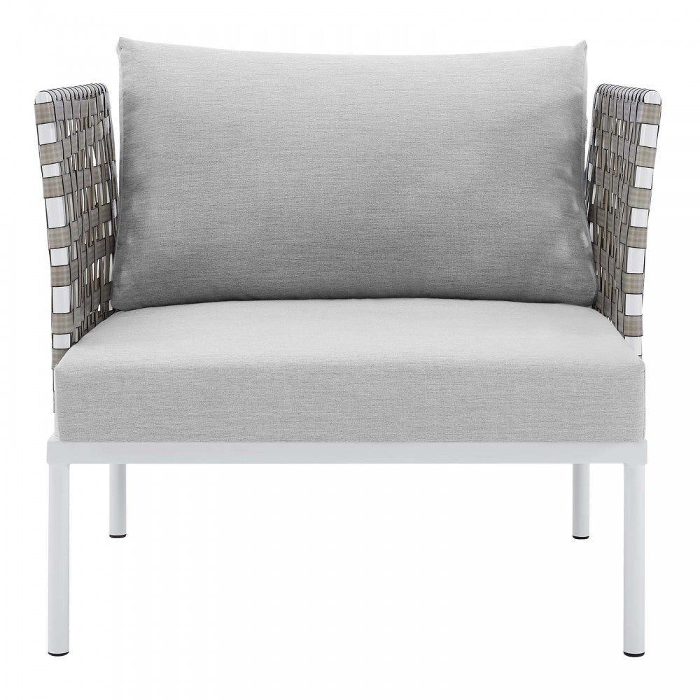 Harmony Sunbrella Basket Weave Outdoor Patio Aluminum Armchair, Tan Gray