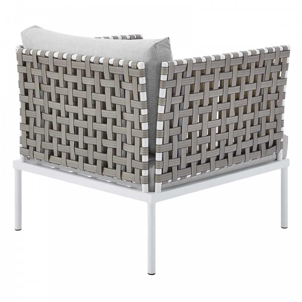 Engage life with Harmony Outdoor Patio Armchair. Enjoy casual conversation under the open sky with an all-weather waterproof outdoor chair from a versatile furniture set that delivers an exceptional outdoor porch, patio, balcony or garden experience. An exceptional modern outdoor furniture set that exceeds expectations, Harmony Patio Armchair comes with synthetic rattan seat back weave, square powder coated aluminum bases, Sunbrella cushions, and non-marking foot caps. An outside chair that arranges according to the spontaneous needs of your guests, set your sights on open and inspired moments with the Harmony Outdoor Patio Collection.