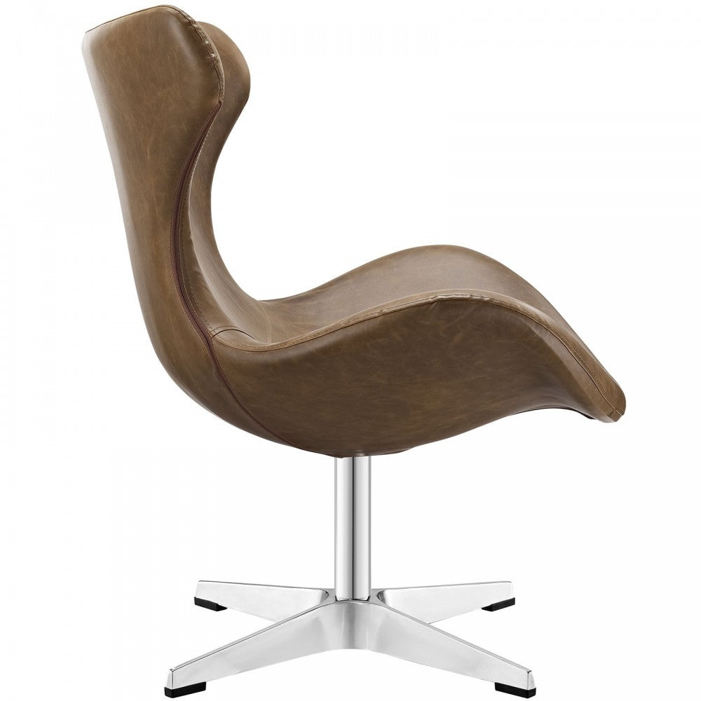 Take charge of your decor with an organic design that makes a statement. The Helm Lounge Chair makes it easy to steer your decor forward with a streamlined contour, expansive shape, and comfortable deep seat pocket. Finely stitched in faux leather, and outfitted with a polished aluminum base, Helm is perfect for relaxing with friends, watching a movie or reading a good book. For living room, lounge, meeting, and reception area use.