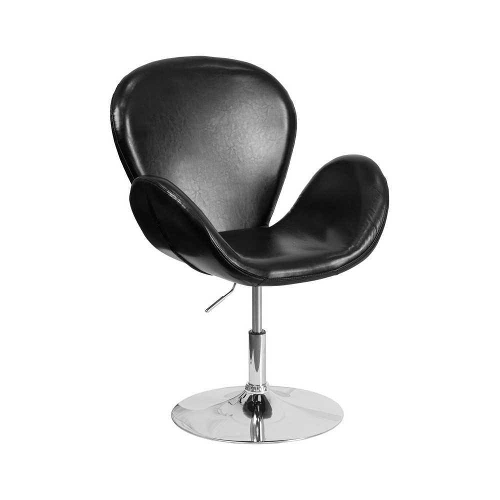 Welcome visitors to your home or business with the open arms of this Black LeatherSoft Reception Chair. This chair has a rounded mid-back design, curved seat and integrated arms with an open wing style. The padded back and seat are upholstered in soft and durable LeatherSoft. Its height adjustable, swivel seat easily adjusts to different desk heights using the convenient gas lift handle, located just below the seat. A shiny chrome base and footrest complement its contemporary design and a plastic ring, embedded in the base, protects your floor by sliding smoothly when you need to move the chair. When you need a versatile seating option for your home or business, this adjustable height reception chair is an excellent choice. [CH-112420-BK-GG]