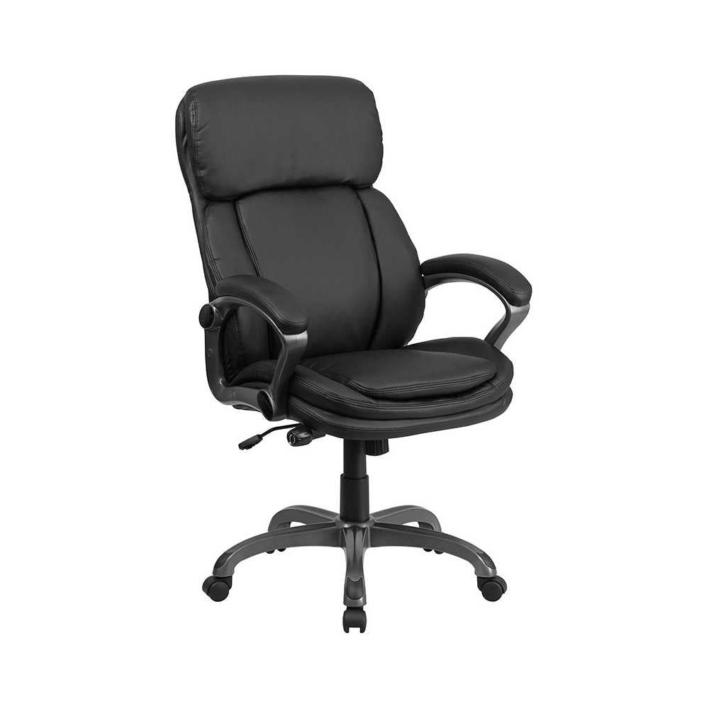 High Back Black LeatherSoft Executive Swivel Ergonomic Office Chair with Lumbar Support Knob with Arms