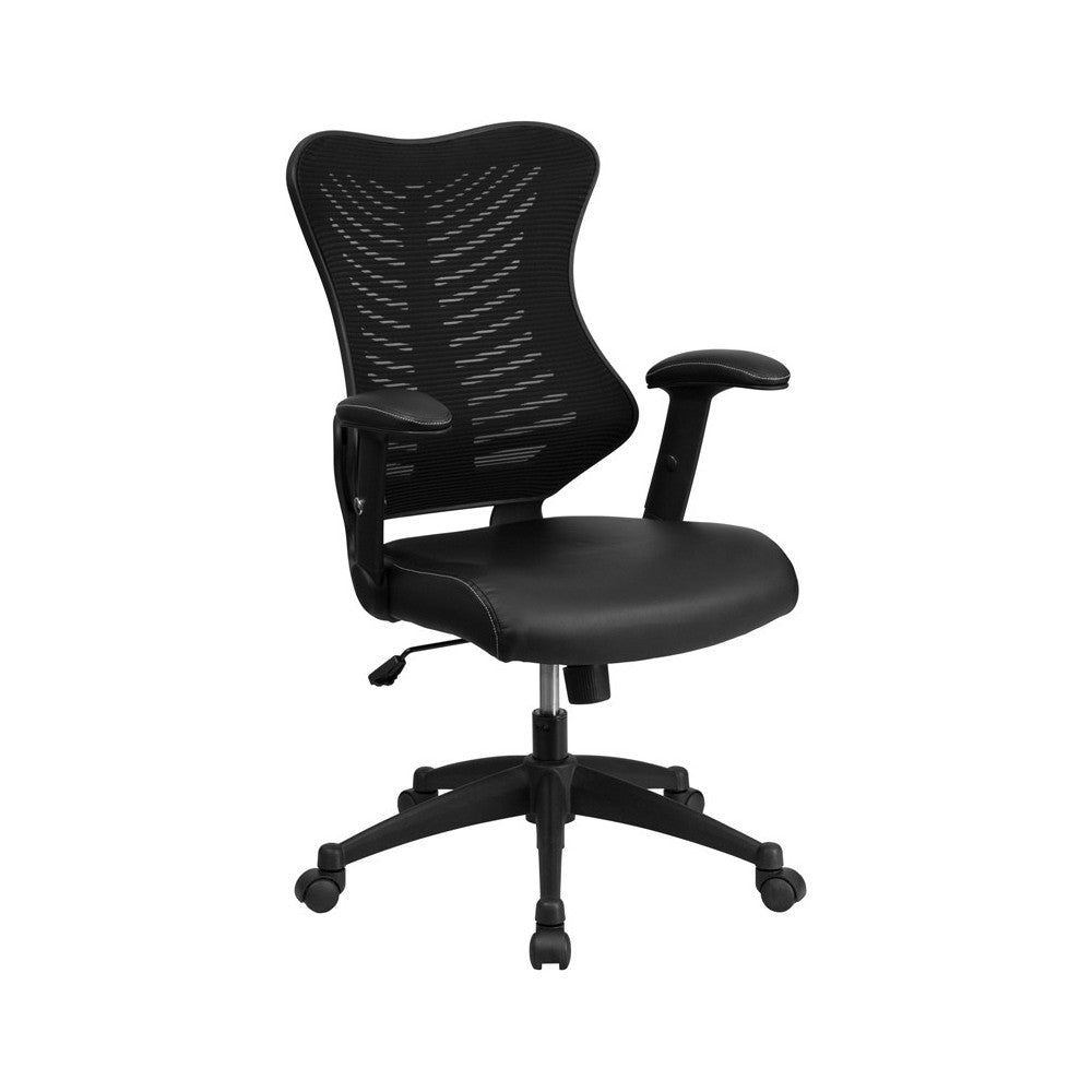 High Back Designer Black Mesh Executive Swivel Ergonomic Office Chair with LeatherSoft Seat and Adjustable Arms