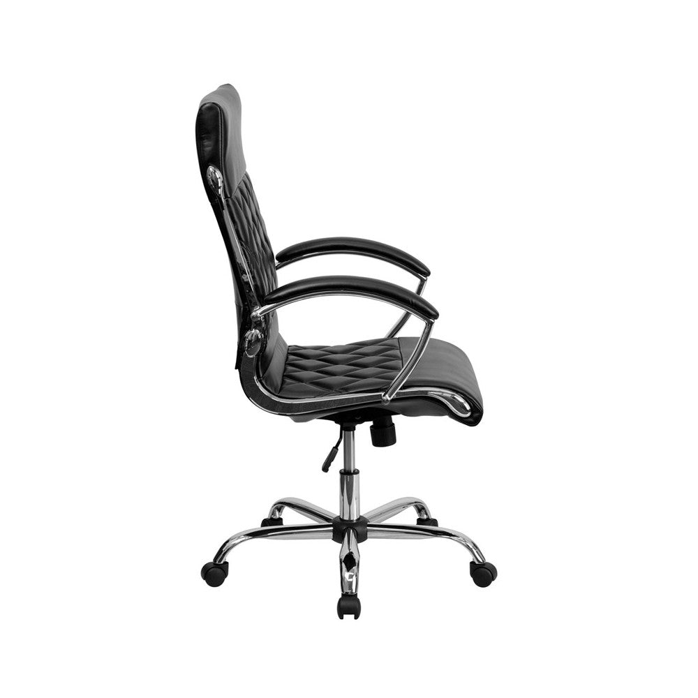 High Back Designer Quilted Black LeatherSoft Executive Swivel Office Chair with Chrome Base and Arms