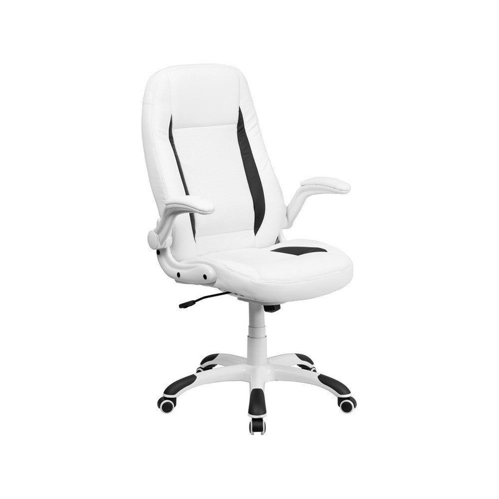High Back White LeatherSoft Executive Swivel Ergonomic Office Chair with Flip-Up Arms