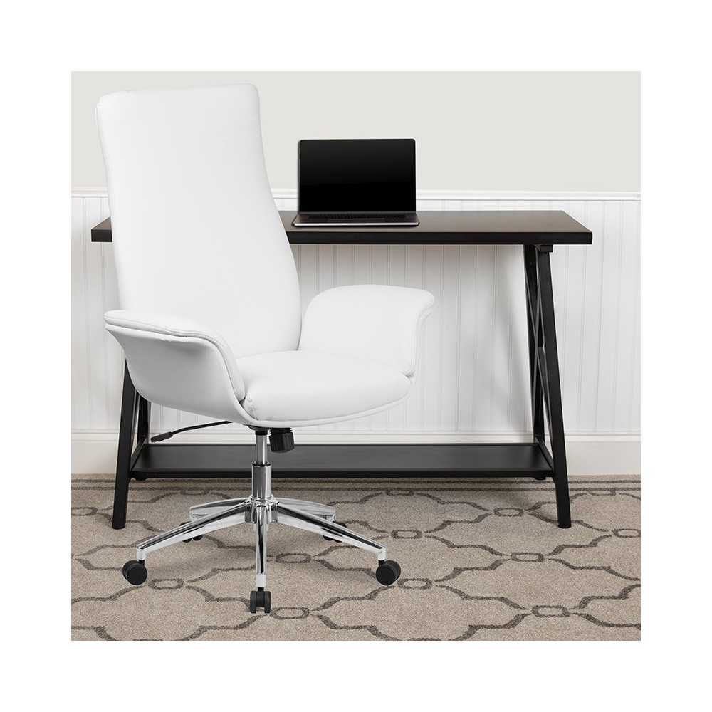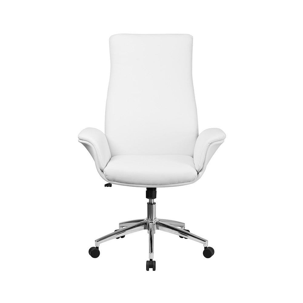 High Back White LeatherSoft Executive Swivel Office Chair with Flared Arms