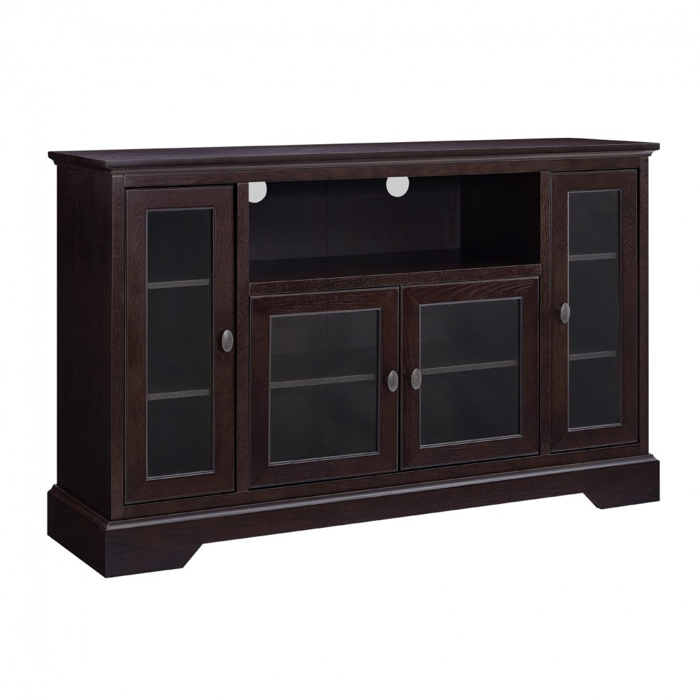 Highboy 52" Transitional Glass Wood TV Stand - Espresso