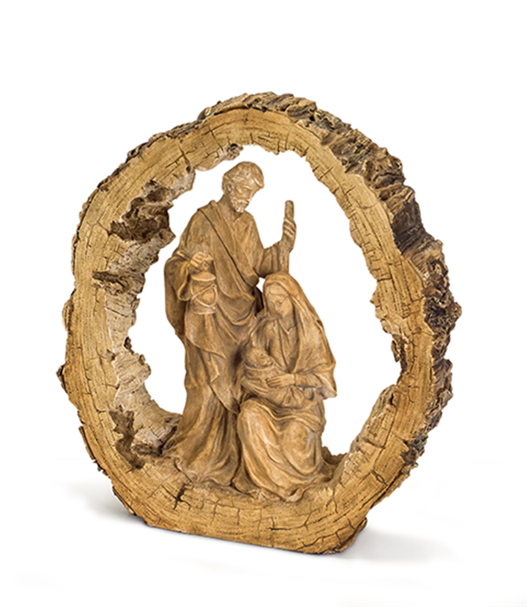 Ring in the holiday season with this religious decor piece, the Holy Family Tree Statue. Featuring the Mother Mary, Joseph, and Baby Jesus, this set is a great addition to your woodland or rustic Christmas decor. The faux natural wooden painted finish paired with the tree ring design is the perfect combination to create a timeless holiday display. The quality polyresin design is sure to last for seasons to come.