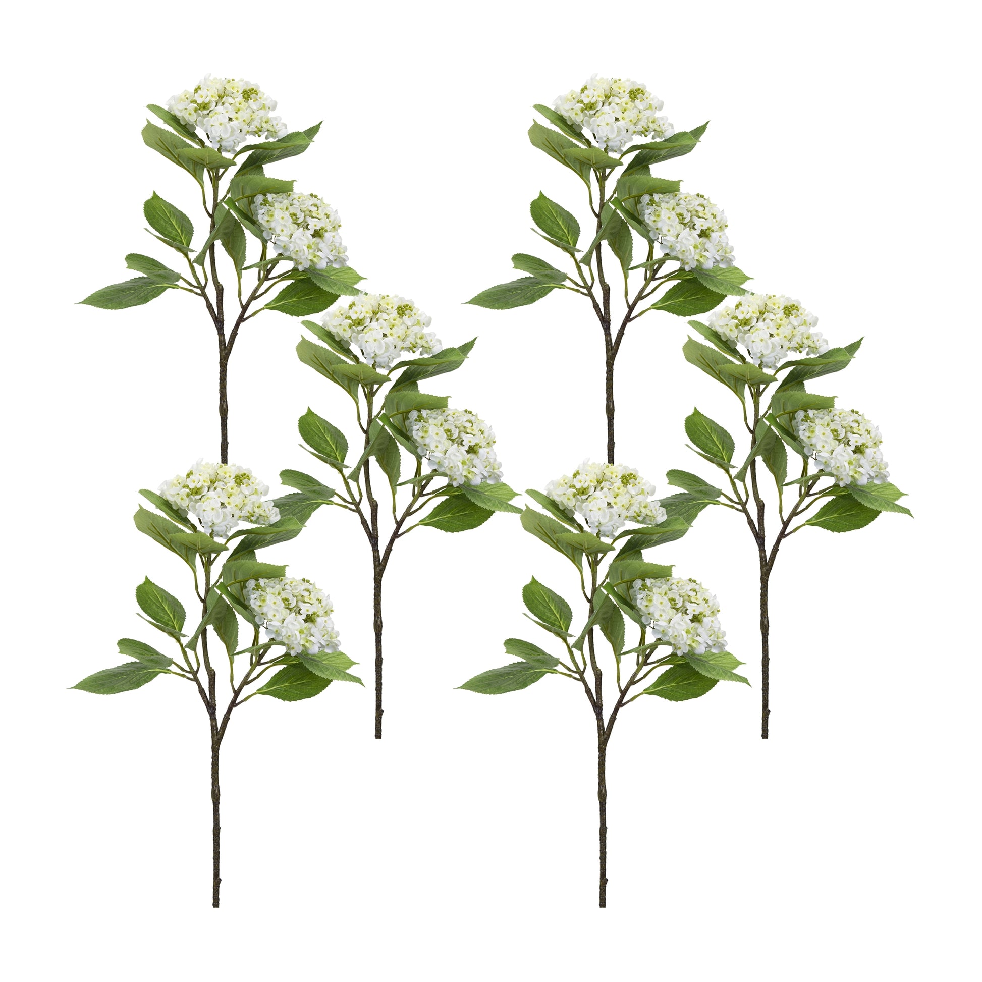 Hydrangea Branch (Set Of 6) 32"H Polyester, White, Green, Brown