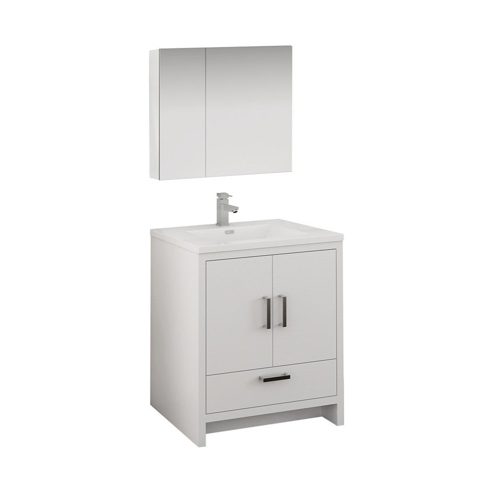Imperia 30 Glossy White Free Standing Modern Bathroom Vanity w/ Medicine Cabinet