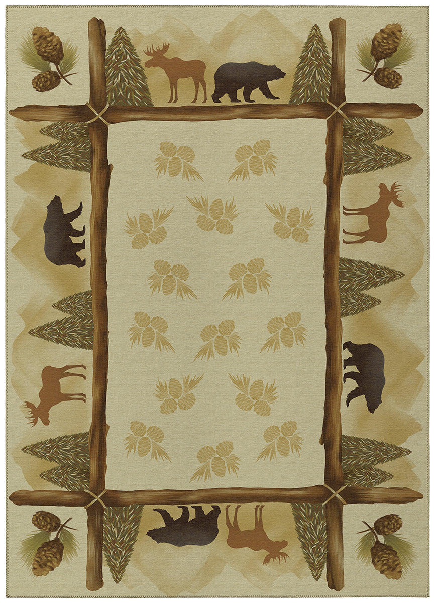 Excursion collection has great casual lodge designs, rustic motifs perfect for lake house, cabin, or man cave. Featuring an ultra-soft and ultra thin pile, each rug is made with 100% polyester pile complete with a non-skid backing. Crafted in the USA using Foreign & Domestic materials and US labor. They are UV Stabilized for indoor and cover outdoor spaces. Shake out or use straight suction with vacuum, do not use a beater bar. Machine washable in cold water and air dry, some sizes may be too large for a residential washing machine and is family and pet friendly.