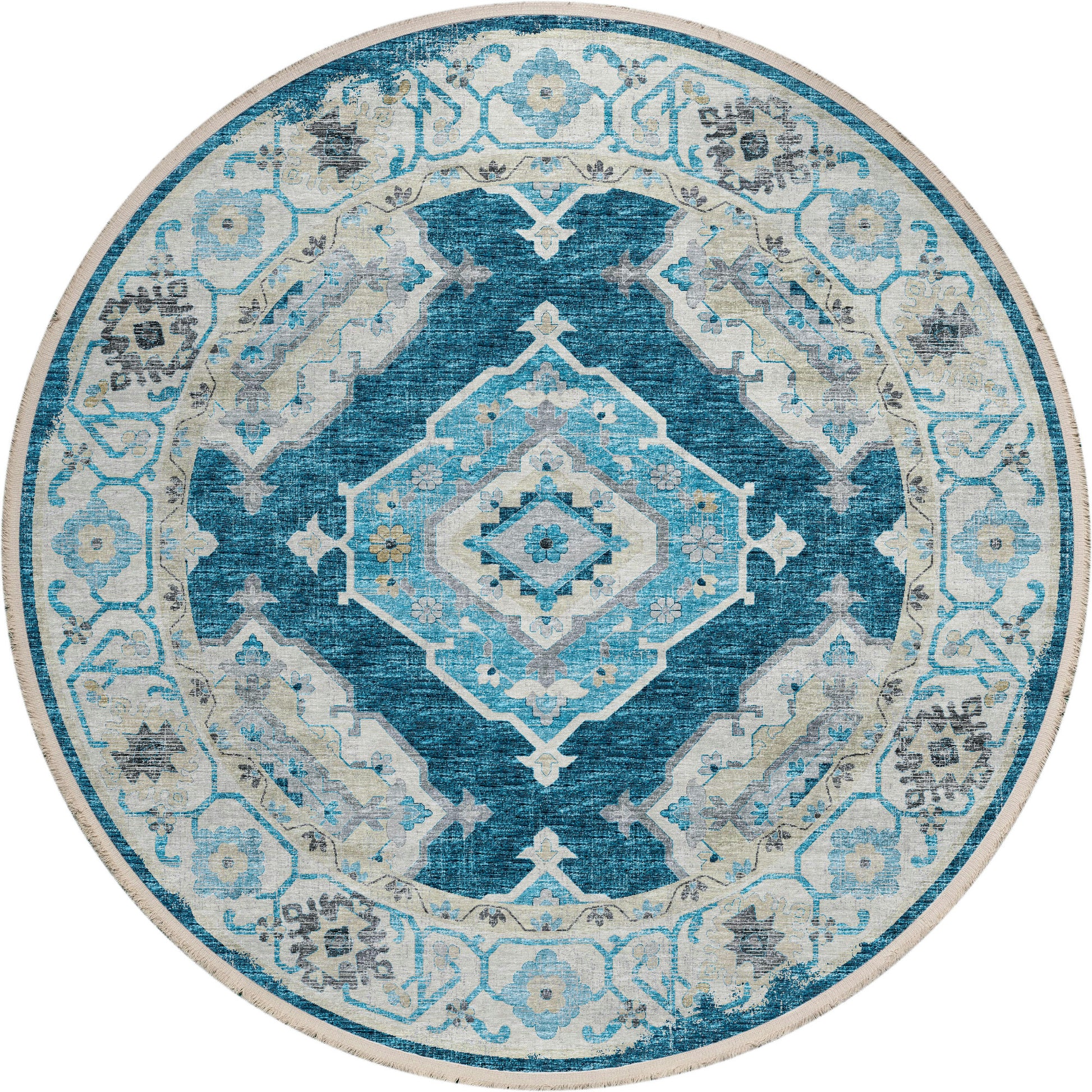 Indoor/Outdoor Marbella MB1 Indigo Washable 10' x 10' Round Rug
