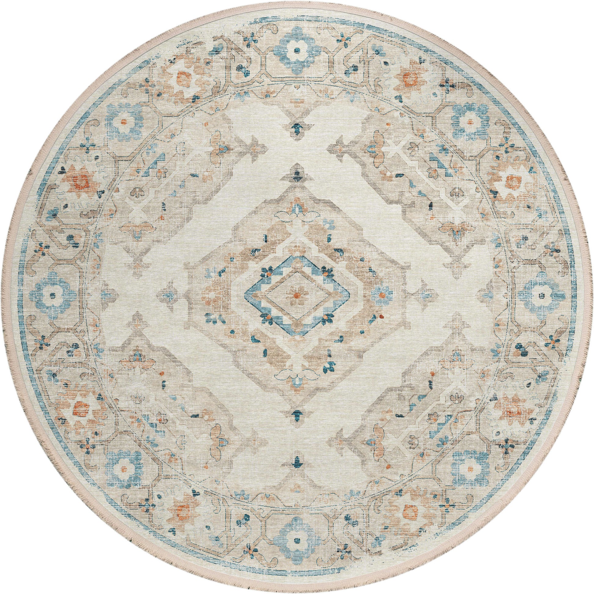 Indoor/Outdoor Marbella MB1 Ivory Washable 6' x 6' Round Rug