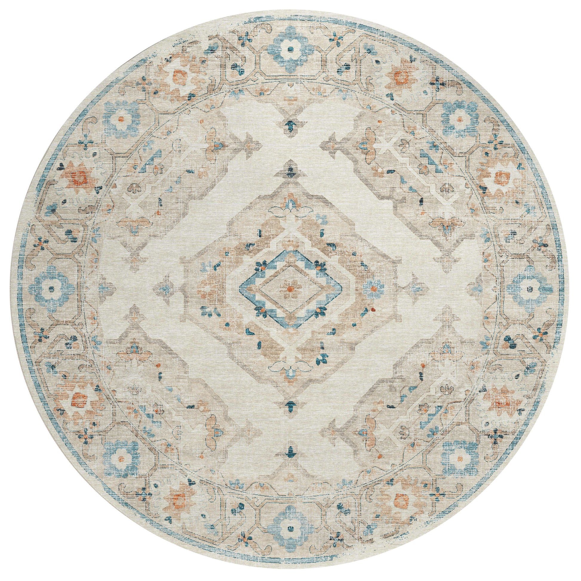 Indoor/Outdoor Marbella MB1 Ivory Washable 8' x 8' Round Rug