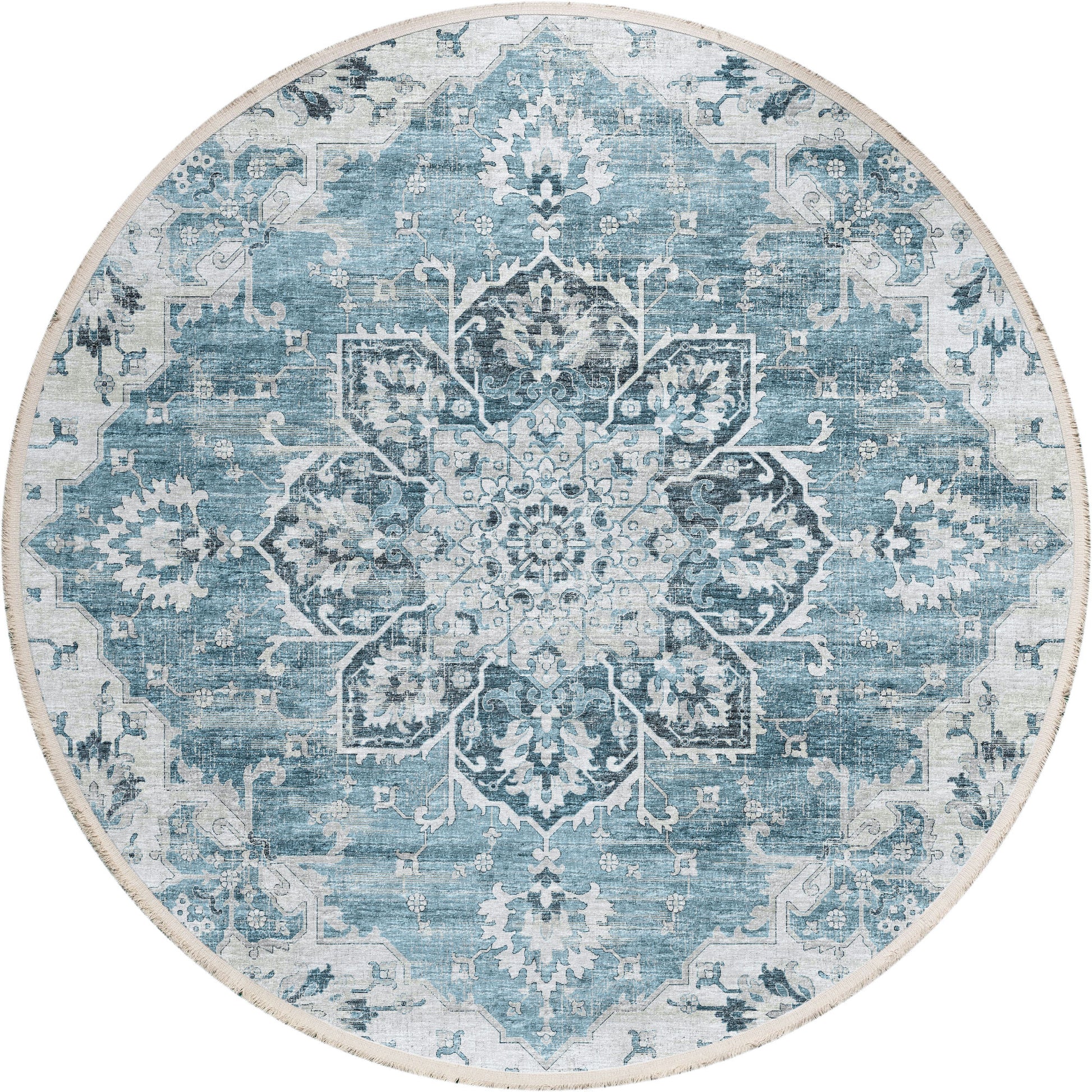 Indoor/Outdoor Marbella MB3 Denim Washable 4' x 4' Round Rug