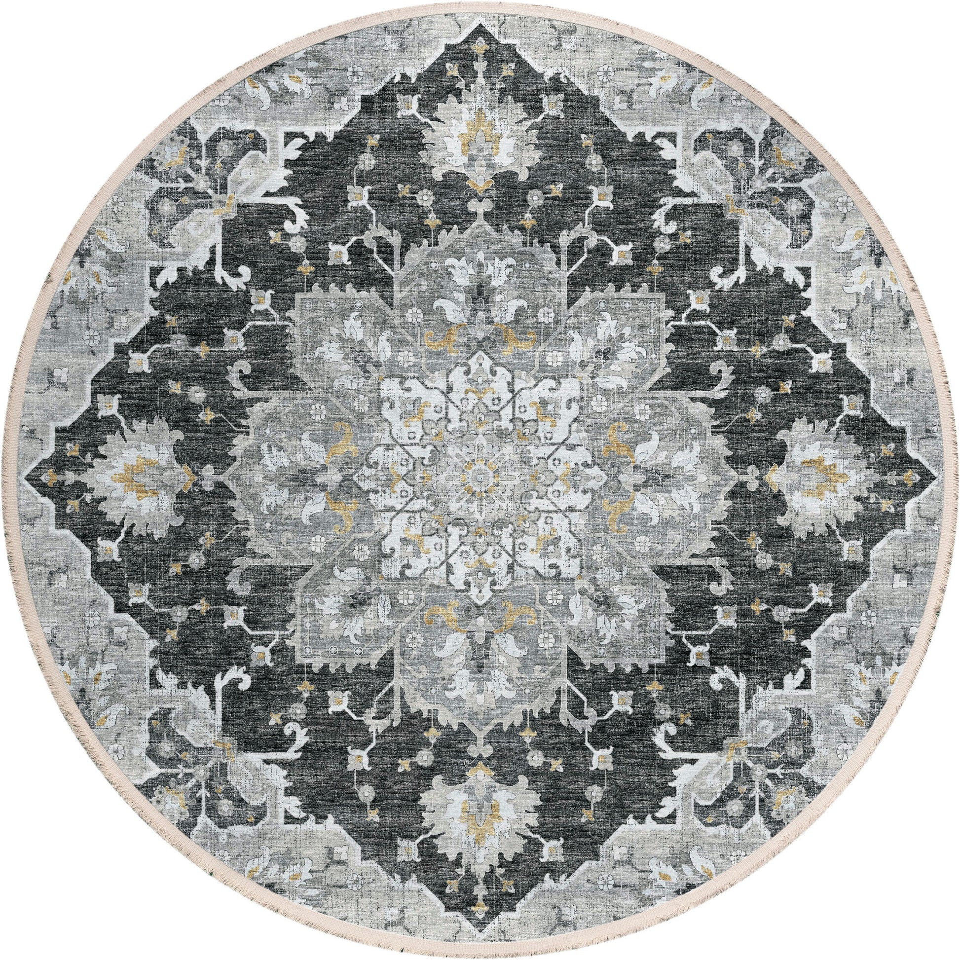 Indoor/Outdoor Marbella MB3 Midnight Washable 4' x 4' Round Rug