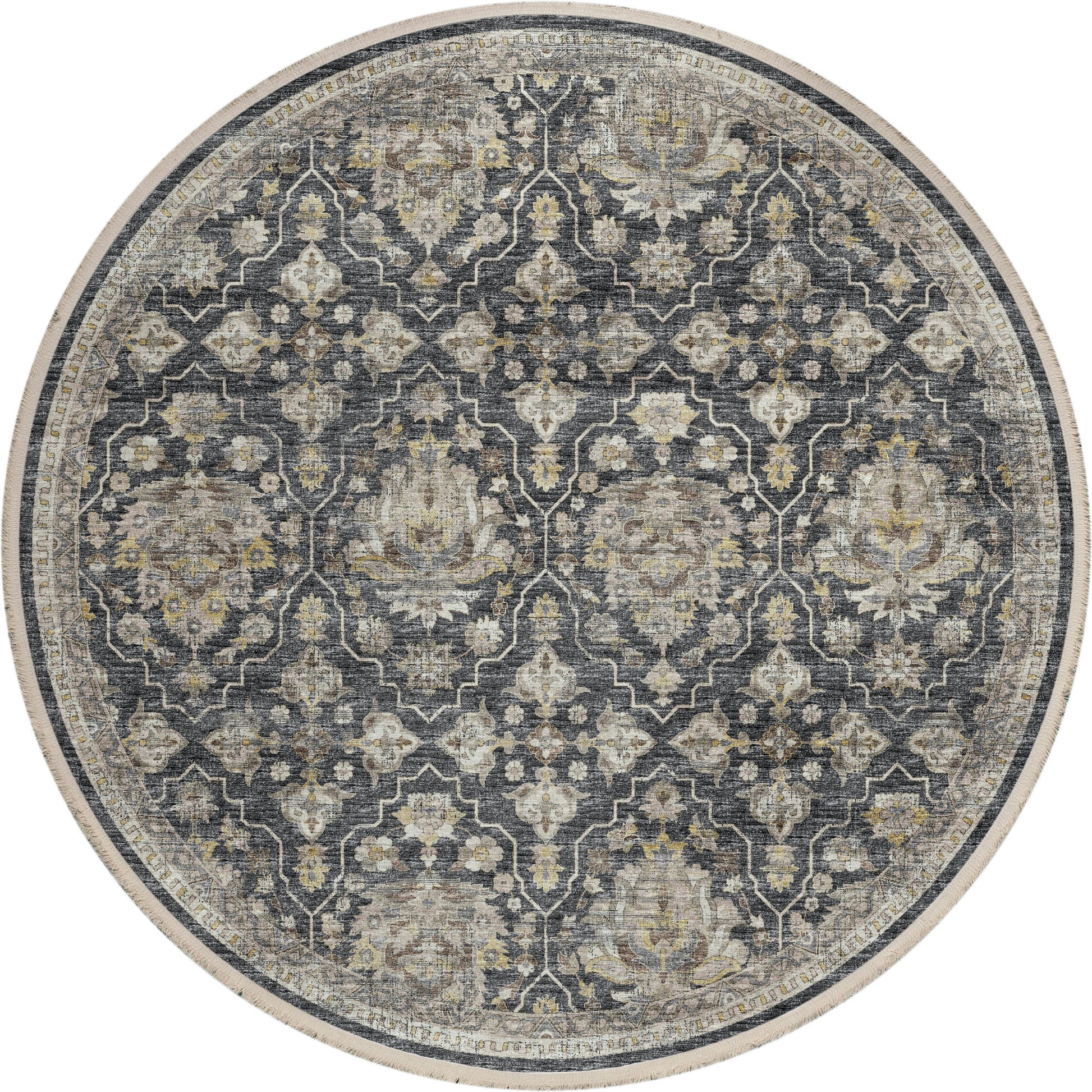 Indoor/Outdoor Marbella MB4 Charcoal Washable 6' x 6' Round Rug