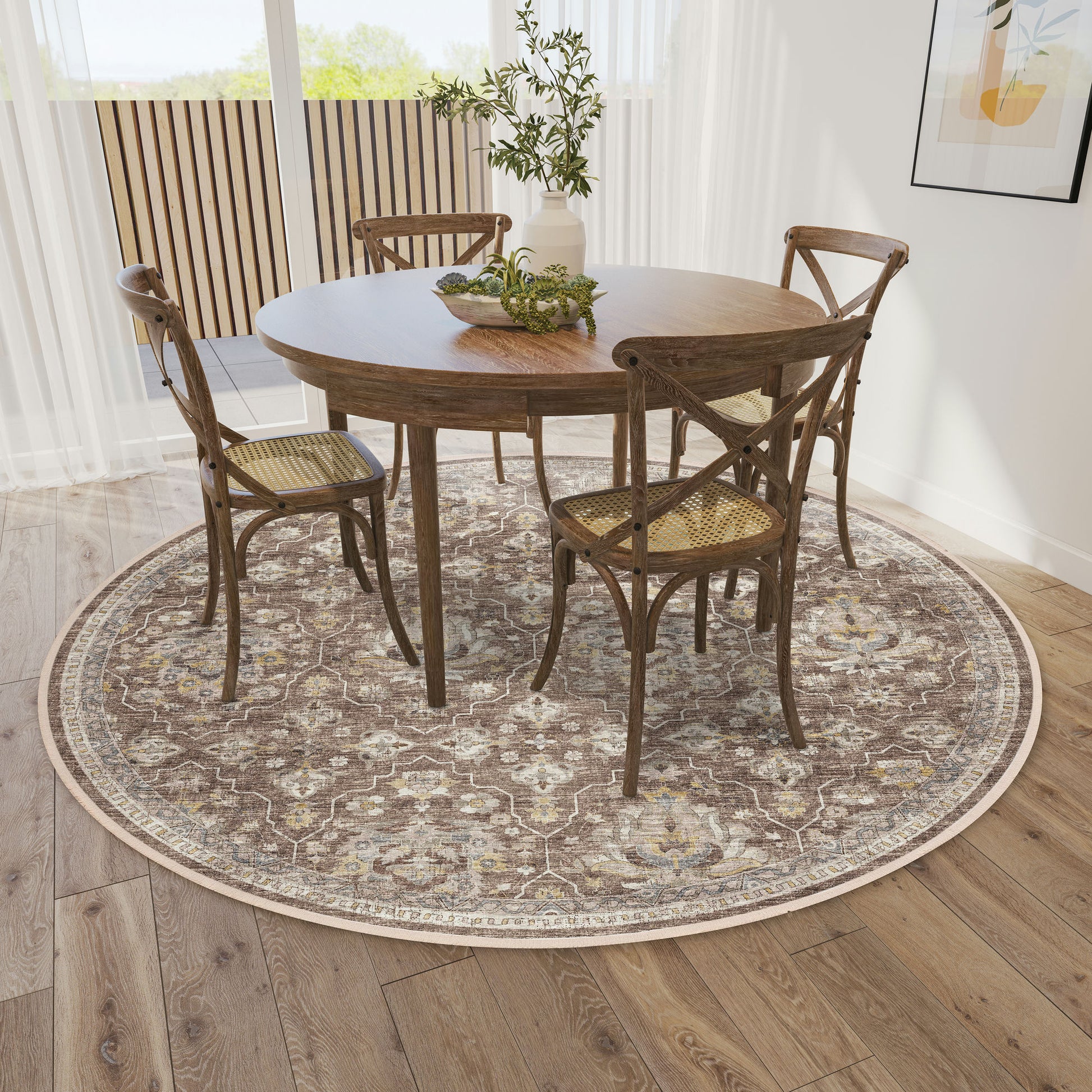 Indoor/Outdoor Marbella MB4 Mocha Washable 4' x 4' Round Rug