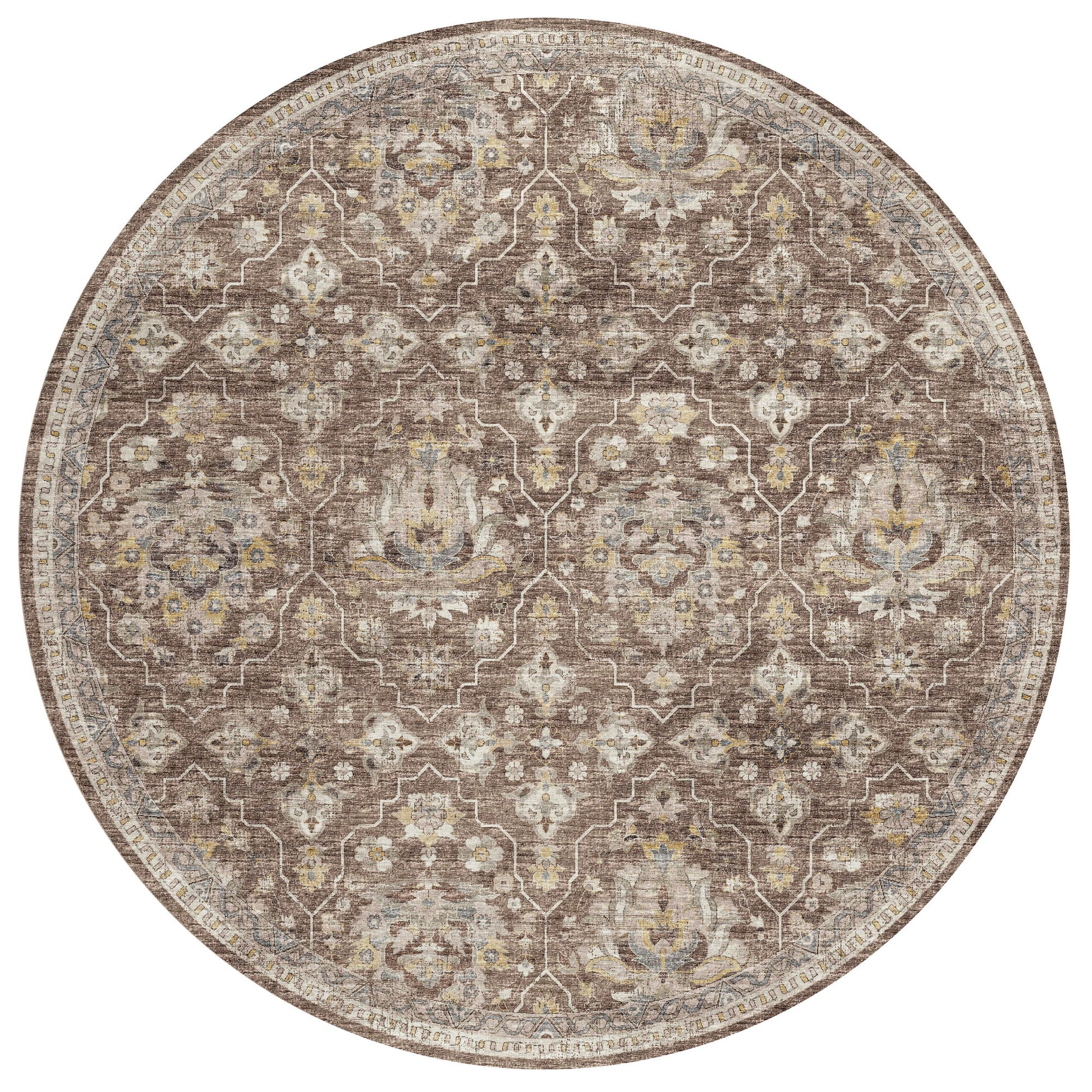 Indoor/Outdoor Marbella MB4 Mocha Washable 8' x 8' Round Rug